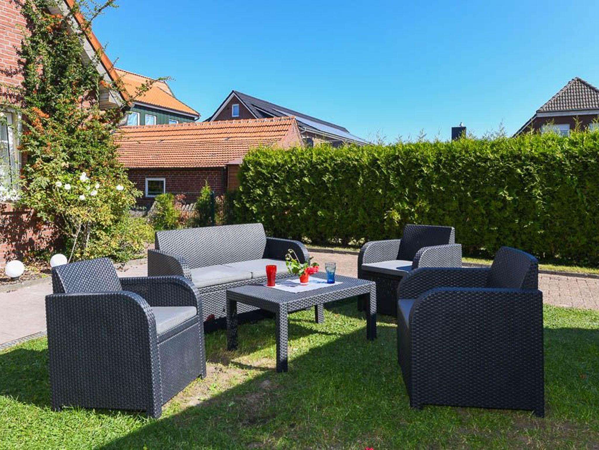 Gemütliche Ferienwohnung Kapitän Kirk in Bensersiel, nur 300 Meter vom Nordseedeich entfernt, mit Garten und WLAN.