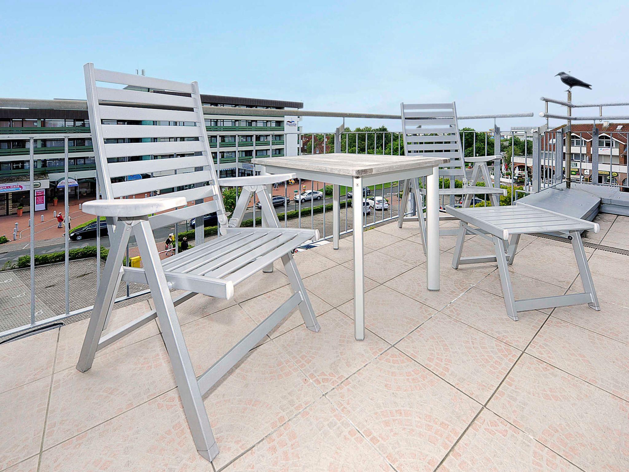 Die Wohnung befindet sich im 4. Obergeschoss des Nordseegartenparkes; vom Balkon aus haben Sie einen herrlichen Blick auf die Nordsee. Die Räume sind über zwei Wohn-Ebenen verteilt. Im zweiten Schlafzimmer, das sich im Dachstudio befindet, ist ein zweiter Fernseher untergebracht.