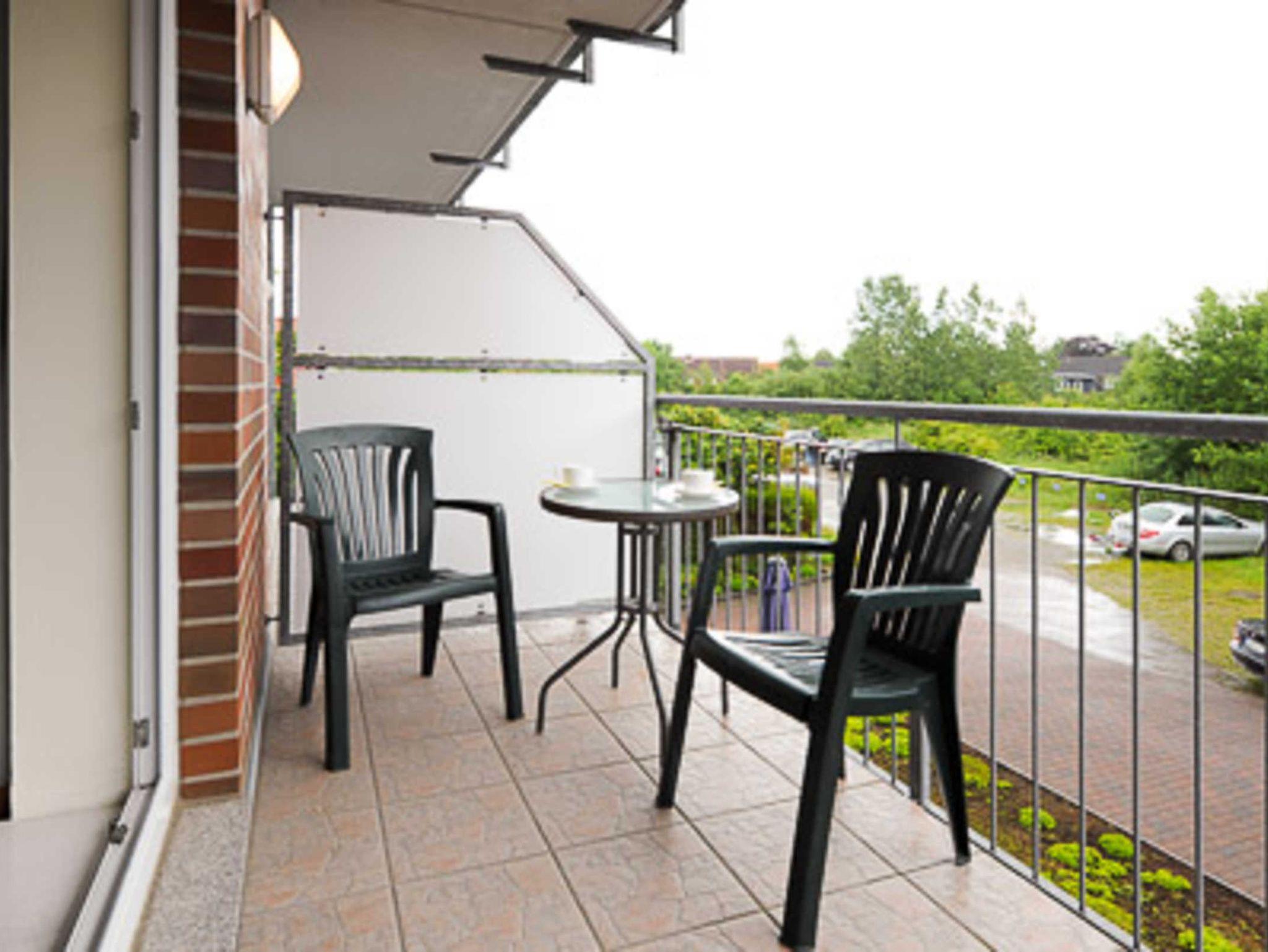 Modernes Apartment Sea Angel im Nordseegartenpark Bensersiel mit Balkon und Küchenbereich.