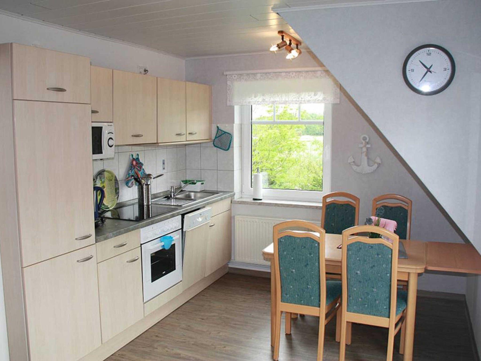 Die fünfte Wohnung heißt „Island“ und ist ganz oben im Haus untergebracht, so dass ein Blick über den Deich auf die Nordsee und die vorgelagerten Inseln möglich ist. Diese Wohnung „Island“, geeignet für 1 bis 2 Personen nebst zusätzlichem Kleinkind, verfügt über einen Wohnraum mit integrierter vollständiger Küche, ein Schlafzimmer sowie ein Badezimmer mit Dusche, Waschtisch und WC.