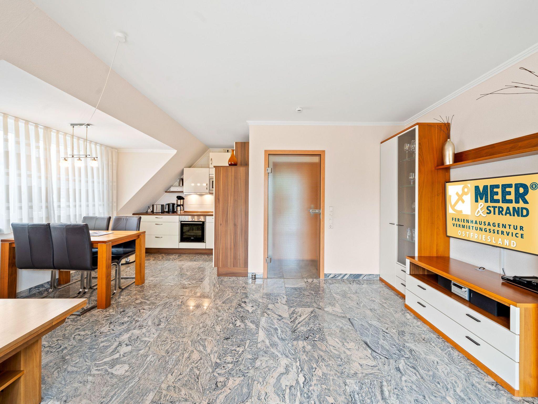 Von der Wohnung aus können Sie alle Attraktionen, die Ihnen Bensersiel zu bieten hat, in wenigen Minuten bequem zu Fuß erreichen: den Strand, den Hafen oder die Badelandschaft ,,Nordseetherme´´. Das Therapiezentrum (z.B. mit allen Kureinrichtungen) sowie ein modernes Wellness-, Sauna- und Fitnesscenter sind auch dort untergebracht. Auch der Hafen und die touristischen Strandanlagen sind in wenigen Minuten erreichbar.