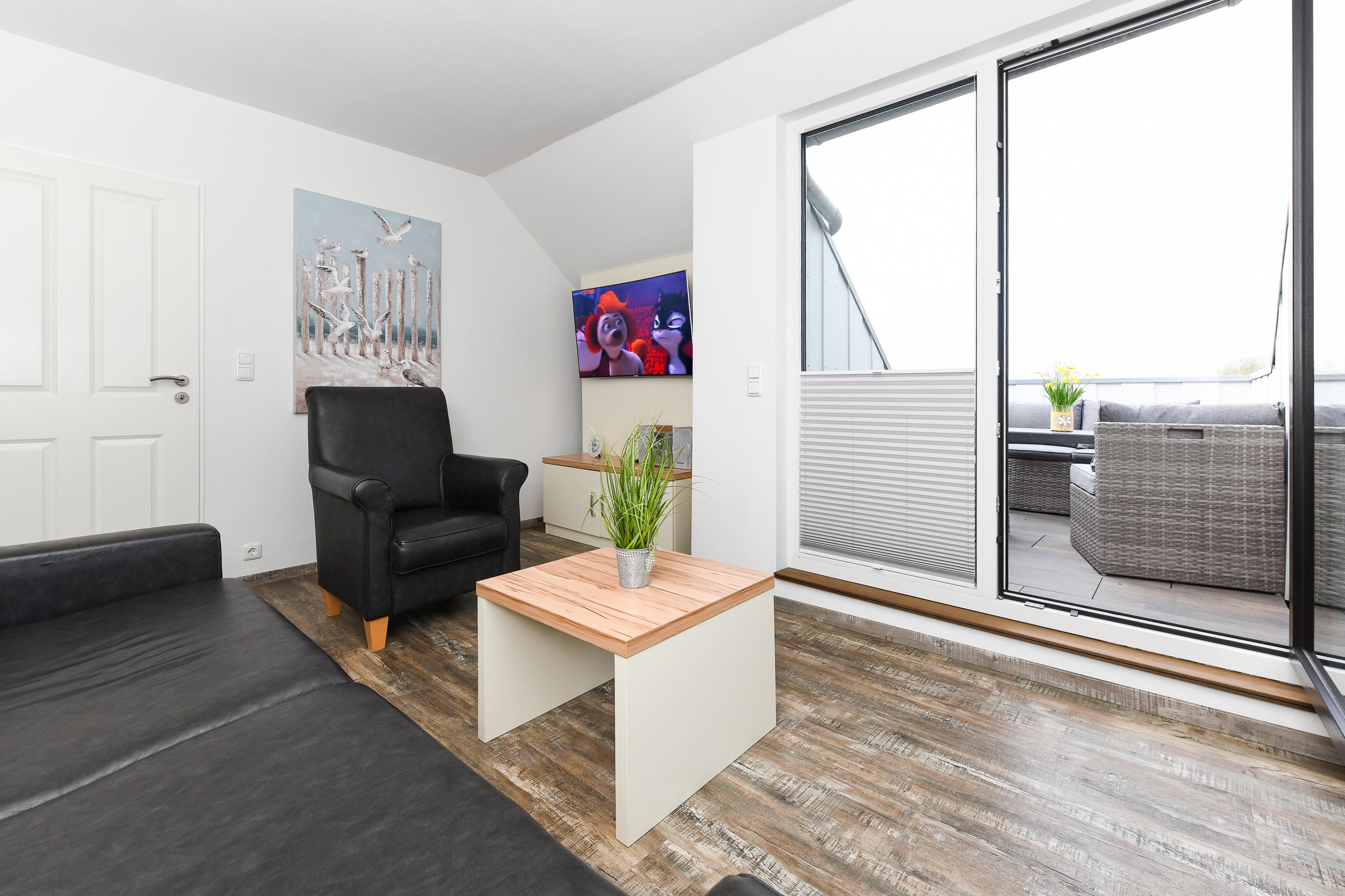 Moderne Ferienwohnung in Bensersiel mit Balkon, WLAN und Poolnähe für erholsamen Urlaub.