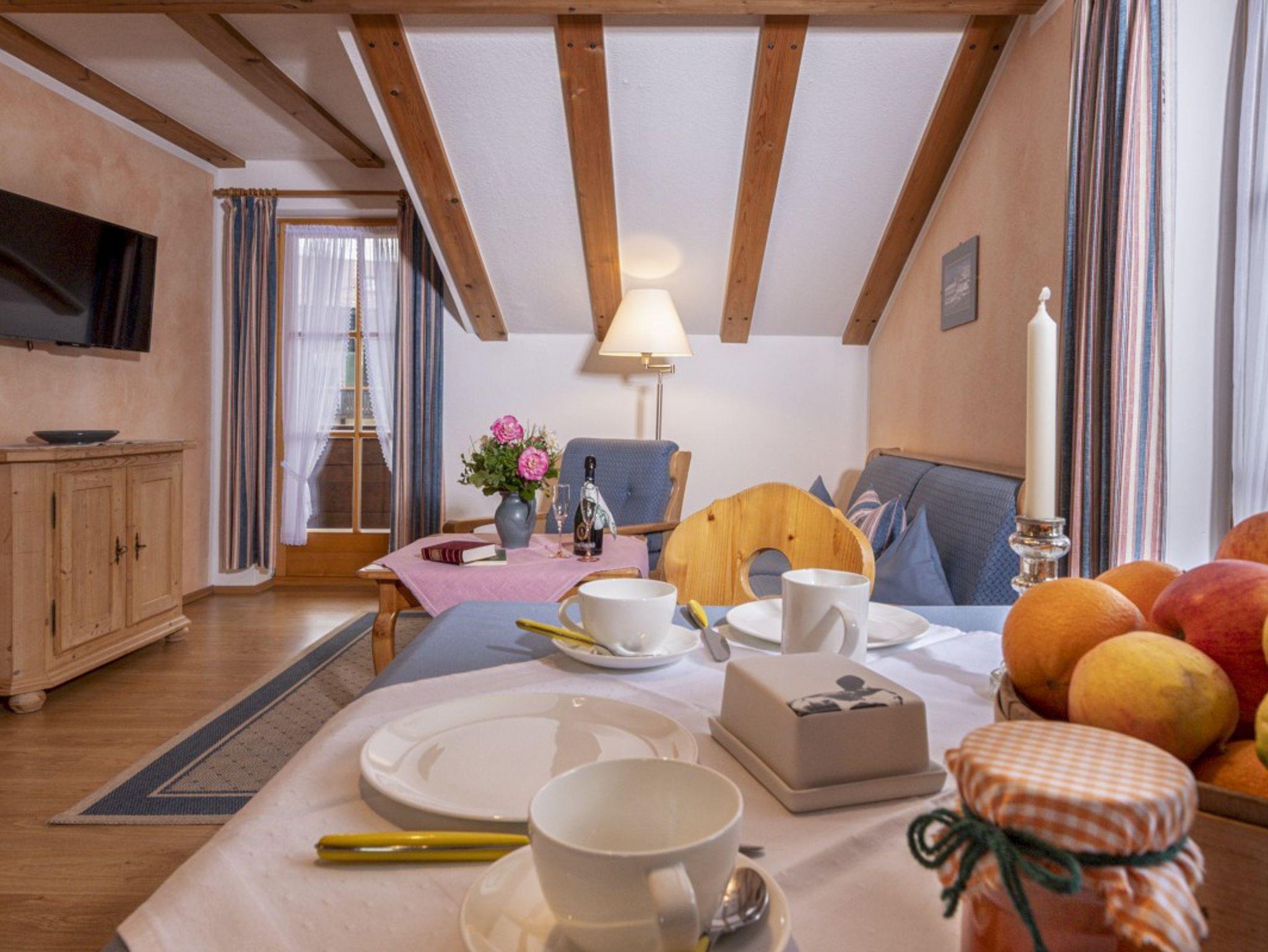 Die Ferienwohnung ist mit Ihren ca. 65 Quadratmetern großzügig geschnitten, die zwei vom Wohnzimmer begehbaren Balkone mit Watzmannblick lassen so manchen Naturliebhaber ins Schwärmen kommen. Die im Landhausstil eingerichtete Wohnung verfügt über ein Schlafzimmer, eine Wohnküche und ein Bad mit Badewanne. Bei Bedarf kann das gemütliche Sofa zu einem Bett umfunktioniert werden.