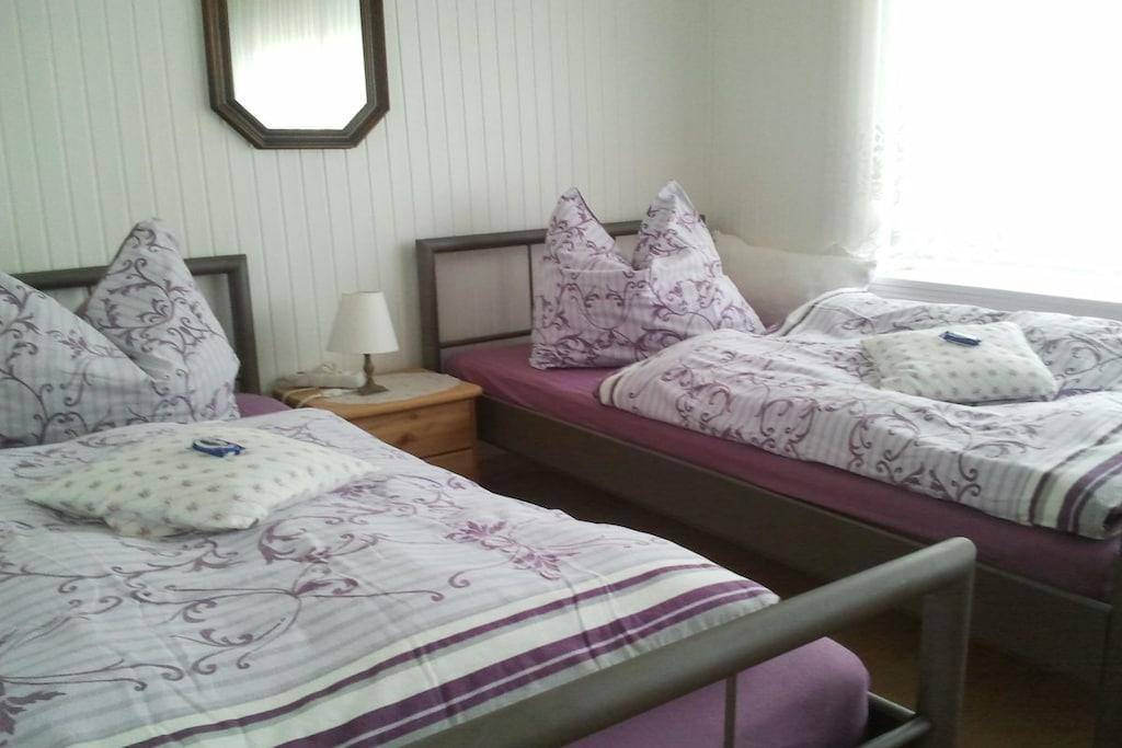 Parterre: (Küche(, , , , Kochnische, Esstisch, Herd, Kochplatte, Wasserkocher, Toaster, Kaffeemaschine, Backofen, Mikrowelle, Spülmaschine, Kühlschrank, Tiefkühlschrank, Hochstuhl), Wohn-/Schlafzimmer(Schrankbett 1 Person, TV, Radio, CD-Spieler), Schlafzimmer(, , Doppelbett, TV), Badezimmer(, Toilette, Badewanne, Dusche, Waschbecken, Handtücher inklusive)) In der 2. Etage: (Schlafzimmer(, Einzelbett, Einzelbett, TV)) Dachgeschoss: (Schlafzimmer(, Einzelbett, Doppelbett, TV, Wasserkocher, Kaffeemaschine, Mikrowelle, Kühlschrank, Klimaanlage), Badezimmer(, Toilette, Badewanne, Dusche, Waschbecken, Handtücher inklusive)) , , Internet, Heizung, Terrasse(Gartenmöbel, Markise), Parkplatz, Bügelbrett, Bügeleisen