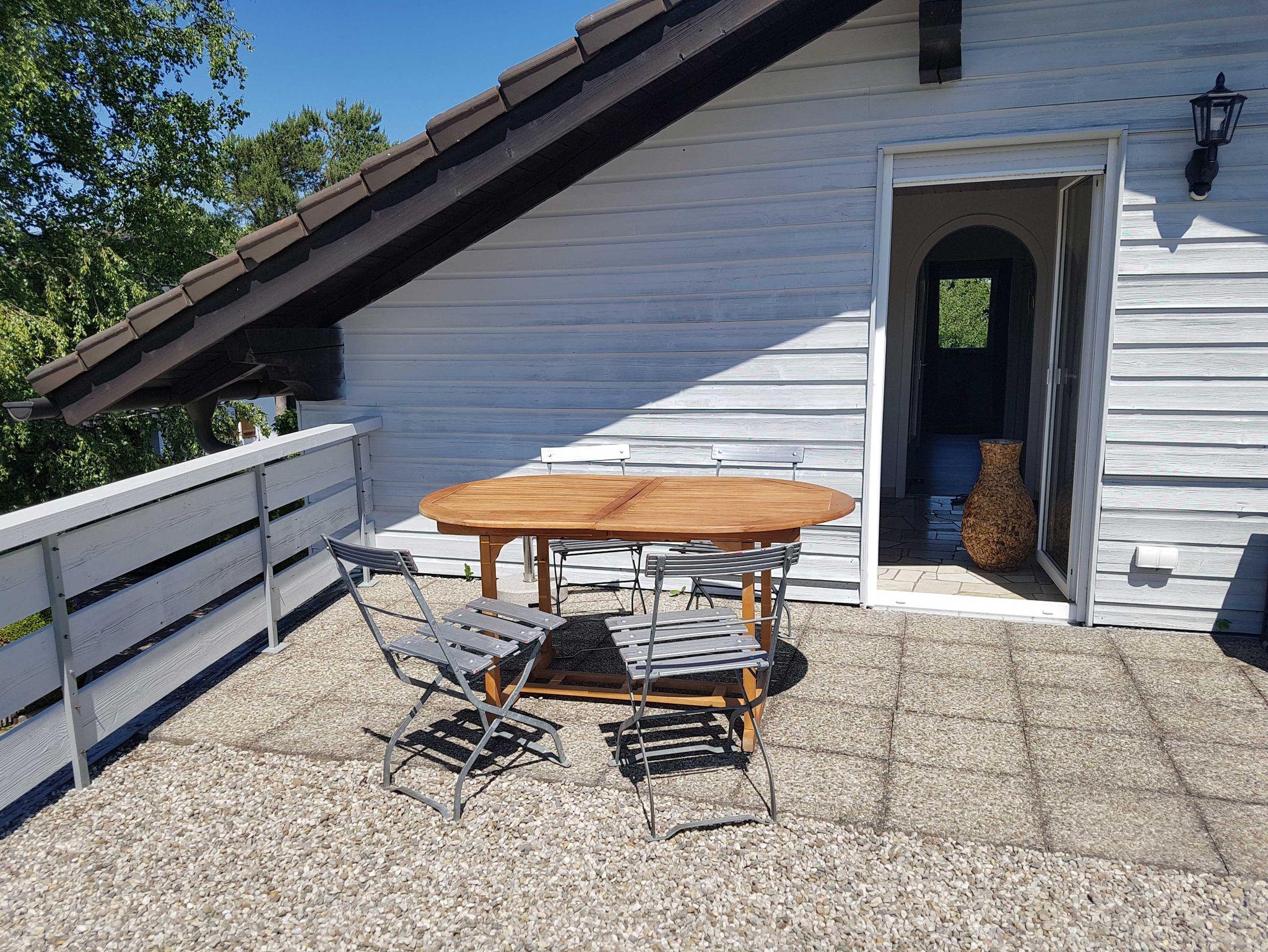 Nur 1 km vom Chiemseestrand und zum Ortskern von Bernau entfernt, erwartet Sie die renovierte 2 Zimmer-Ferienwohnung mit einer Gesamtgrösse von ca. 70 qm. Sie befindet sich im 1. OG eines 2-Familienhauses mitten in einem ruhigen Wohngebiet Bernaus. Die Wohnung ist ansprechend eingerichtet und ideal für 2 Personen. Mit fünf Stühlen um einen Holztisch lädt das 26 qm große Wohnzimmer zum gemeinsamen Essen und Arbeiten ein. Auf der ausziehbaren Schlafcouch lässt sich gemütlich faulenzen und lesen oder TV schauen. In der seperaten Küche mit Spülnaschine, Kühl-/Gefrierkombination, Herd mit Backofen, Wasserkocher, Kaffeemaschine, Geschirr und Küchenutensilien lässt sich nicht nur gut Kaffee kochen. Das Schlafzimmer ist mit einem hochwertigen RUF Doppelbett (1,60x2,00) und genügend Schrankraum ausgestattet. Das Bad mit WC und Badewanne verfügt über zwei Dachfester. Und wer gerne länger bleibt oder mit leichtem Gepäck reist kann die Waschmaschine benutzen.