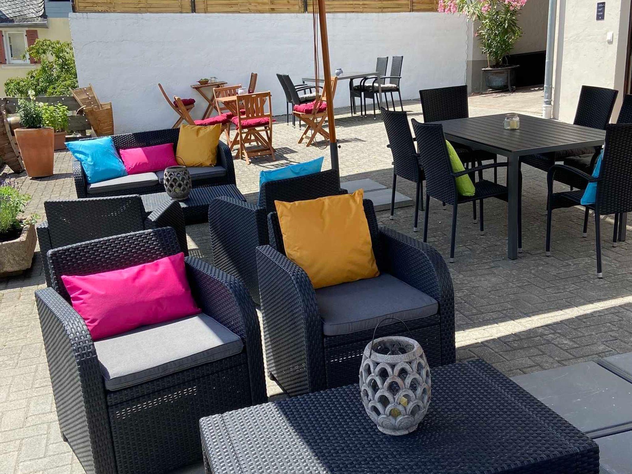 Zum Haus gehören ein Balkon, eine gepflasterte Terrasse mit Grillplatz sowie ein traumhafter, komplett eingezäunter Garten mit vielen Sitz-und Verweilmöglichkeiten. Das Ferienhaus Burgblick in Bernkastel-Kues ein Ort für Familien und Freunde zum Krafttanken und Wohlfühlen von der ersten Minute an.