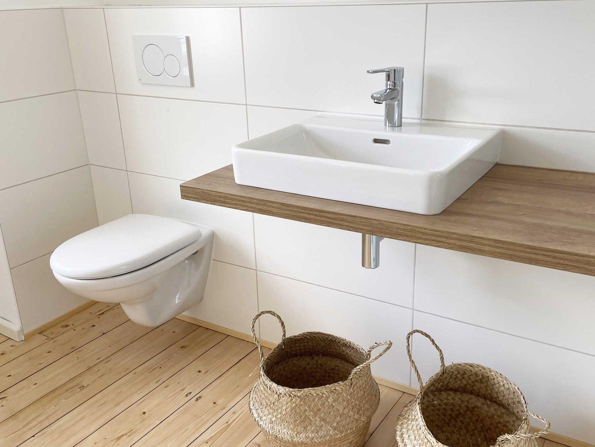 Das Obergeschoss verfügt über zwei Doppelschlafzimmer, ein großes Duschbad mit Holzdielenboden sowie über ein gemütliches Lese- und Lounge-Zimmer. Im Dachgeschoss des Hauses befinden sich zwei Doppelschlafzimmer, ein Duschbad und ein separates WC.