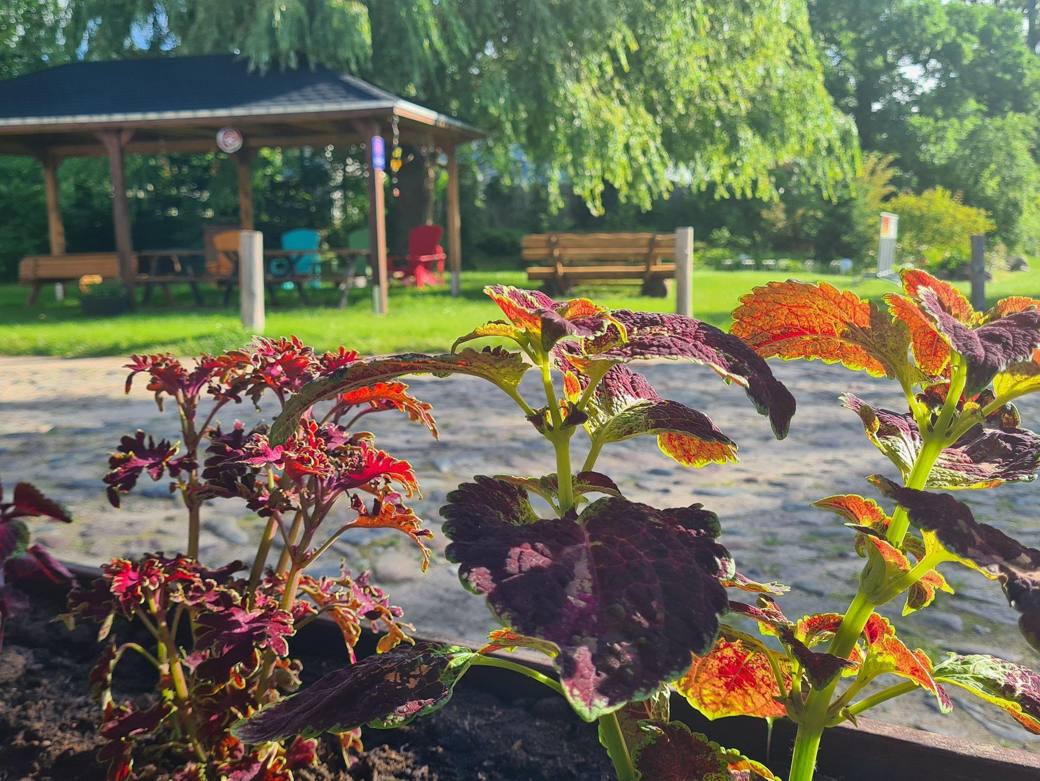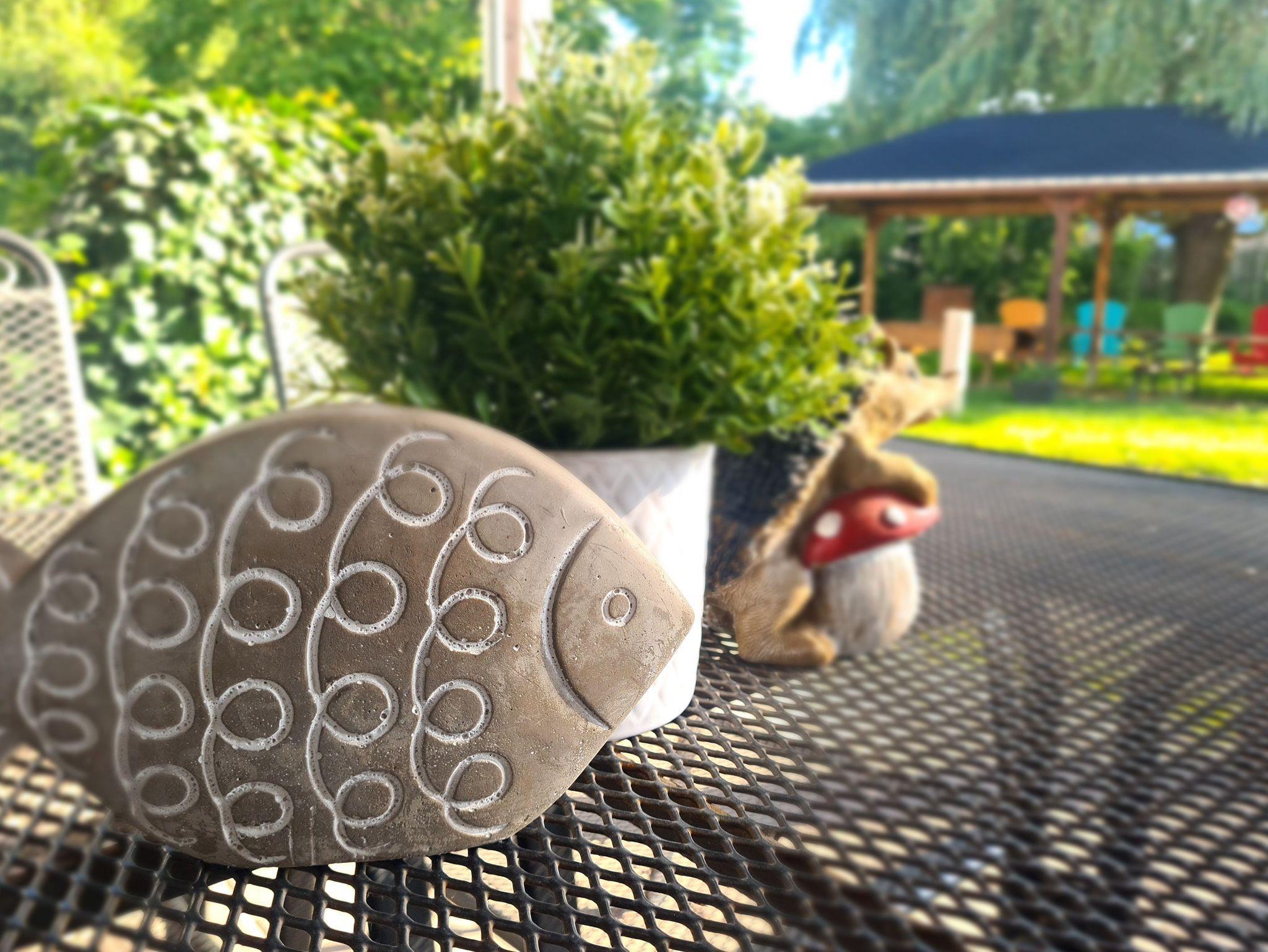 Auf dem Grundstück: Separat für die Gäste 400m² Garten mit Sitzecke, PKW-Stellplatz und Fahrradunterstellplatz. Vogelvolieren und Gemüsegarten. Die Gastgeberin bietet im Kiosk vor Ort von Montag- Freitag einen Imbiss mit Mittagstisch und Getränkeservice.