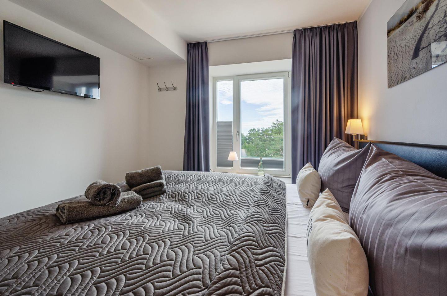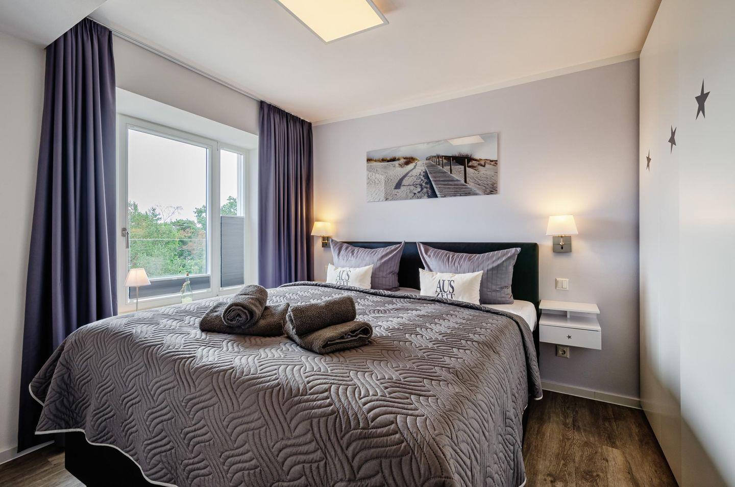 Alle Fenster können verdunkelt werden. Sofern Sie mit offenem Fenster schlafen, können Sie das Rauschen der Ostsee-Wellen genießen.
