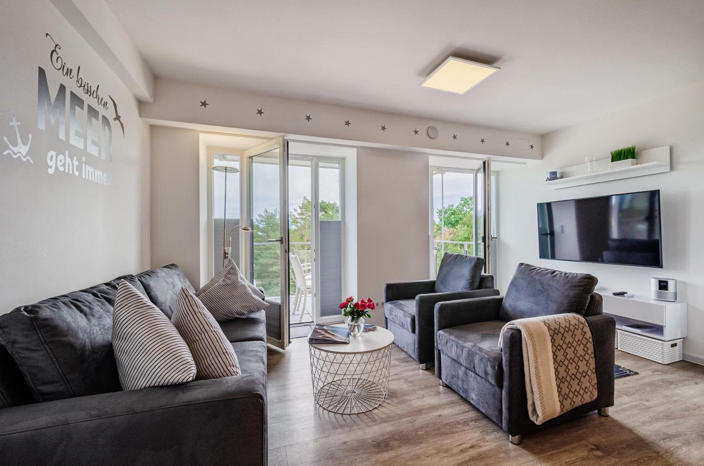 Modernes familienfreundliches Apartment mit Meerblick und direktem Strandzugang in Prora.