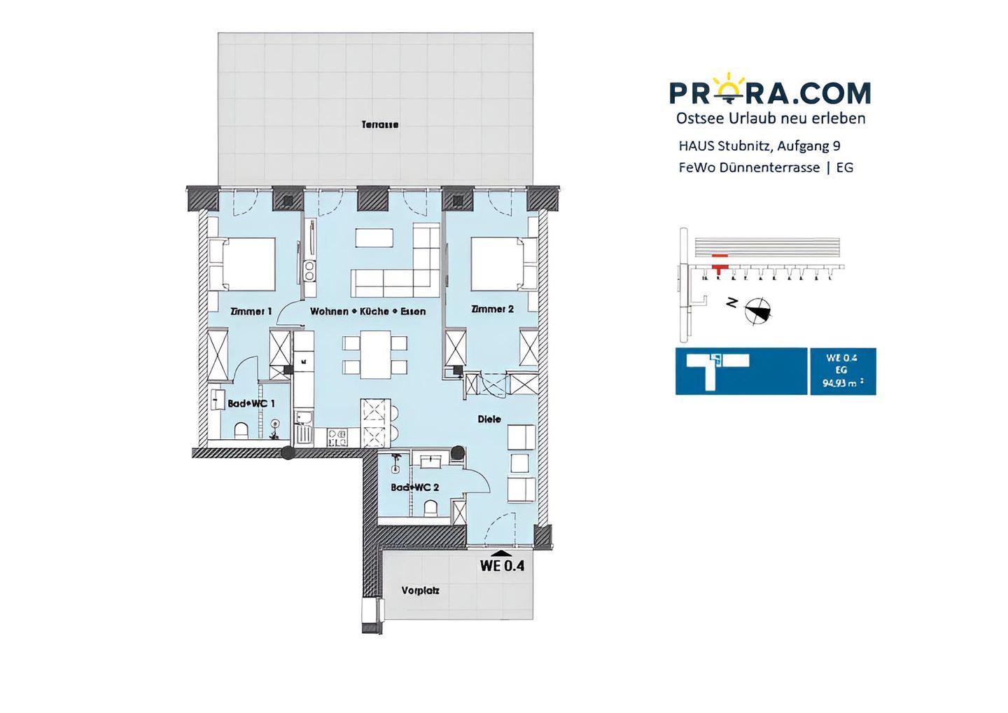 Die FeWo „Dünenterrasse“ im Haus Stubnitz liegt nur wenige Schritte vom Meer entfernt. Zwei ruhige Schlafzimmer, zwei Bäder und ein offener Wohnbereich führen auf eine große Terrasse mit Strandkörben und Blick über die Dünen. Warme Böden, WLAN und feine Details wie Insektenschutz begleiten deinen Aufenthalt. Ein Parkplatz mit E-Ladestation sowie ein eigener Strandkorb am Meer (Mai–Okt.) stehen bereit.