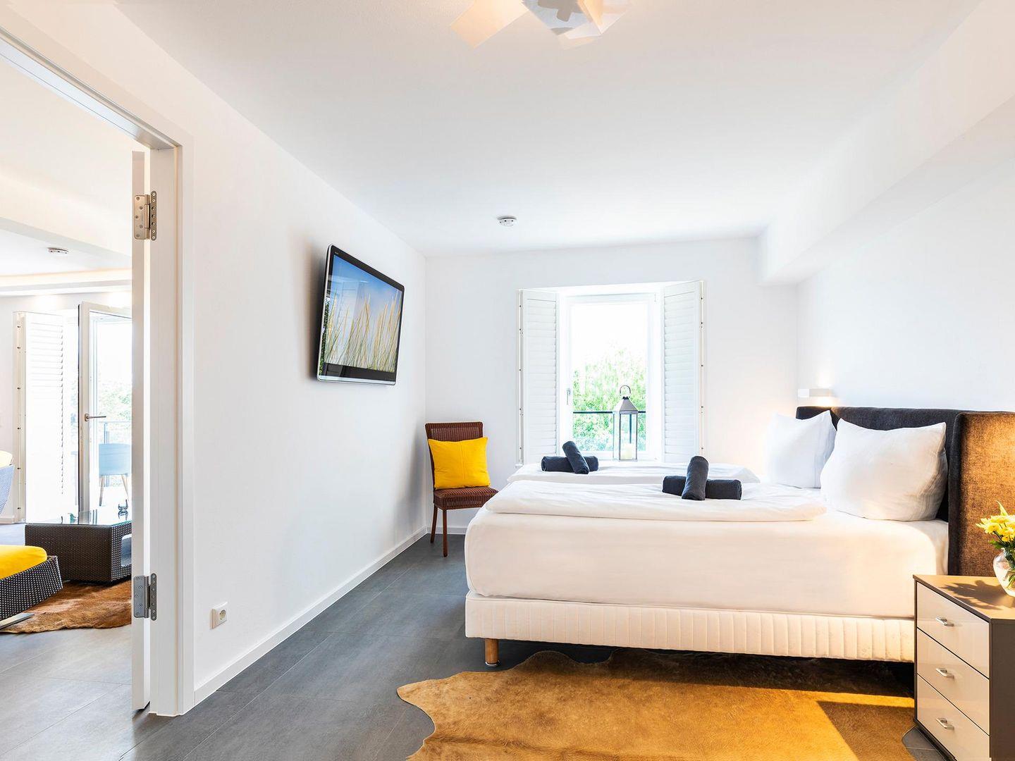 Im Haus Jasmund erwartet dich eine sanfte Ferienwohnung nur 50 m vom Meer entfernt. Zwei helle Schlafzimmer, zwei moderne Bäder und ein offener Wohnbereich, der auf den Balkon mit Blick über Dünen und Küstenwald führt, schaffen Ruhe und Weite. Eine hochwertige Küche, innenliegende Fensterläden, warme Böden und WLAN begleiten deinen Aufenthalt. Ein Parkplatz ist inklusive.