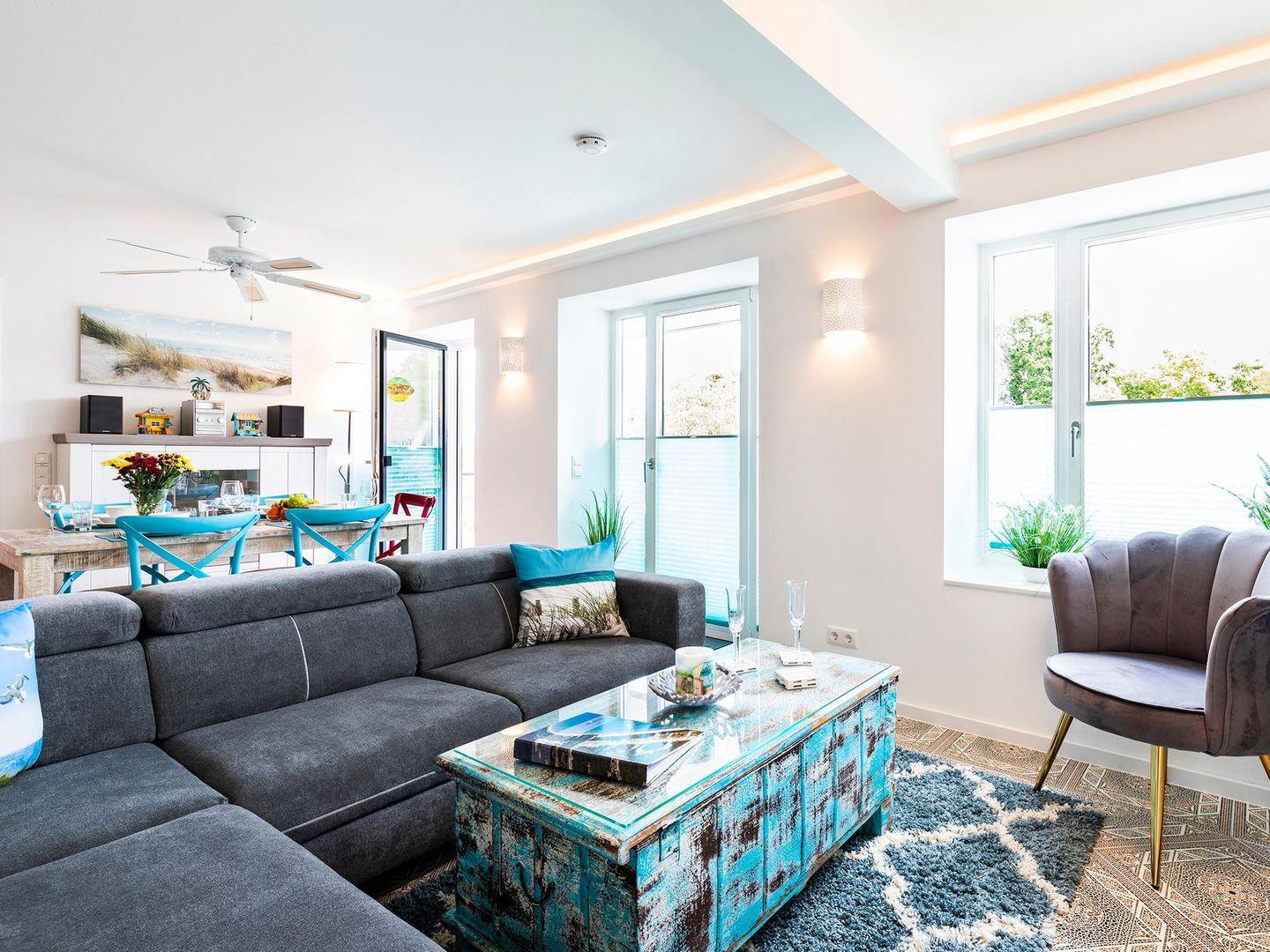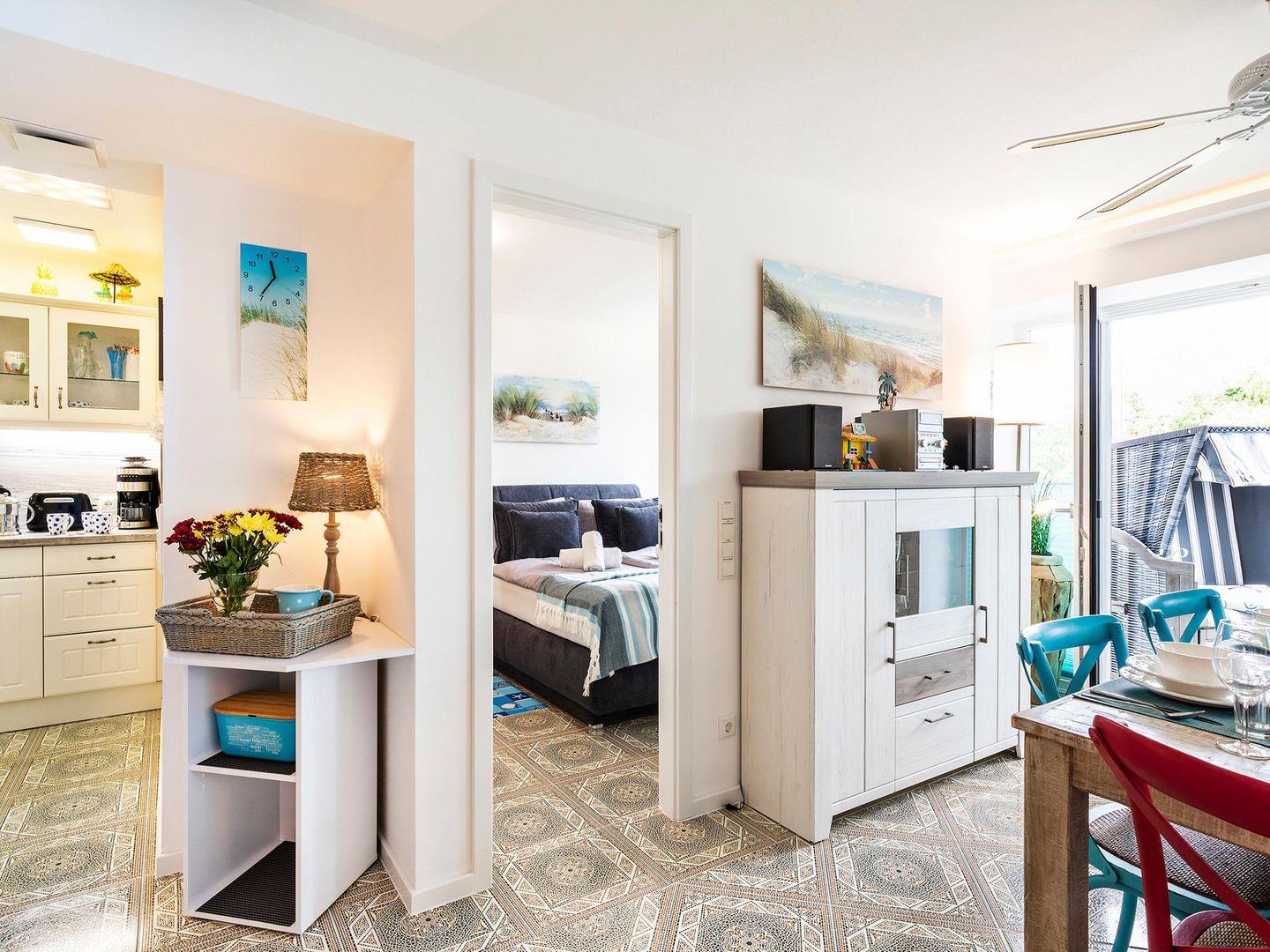 FeWo Strandmuschel: Stilvolle 82m² Wohnung mit Balkon, Meerblick, Strandkorb