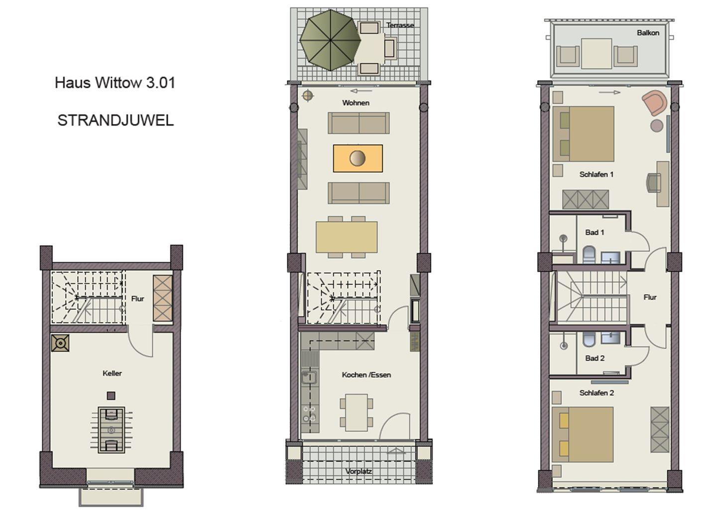 Im Haus Wittow erwartet dich eine helle Maisonette-Ferienwohnung nur ca. 50 m vom Meer entfernt. Oben befinden sich zwei Schlafzimmer. Ein Balkon mit Blickrichtung Dünen und Meer. Unten verbindet ein weiter Wohnbereich Terrasse und Küche zu einem Ort der Ruhe. Zwei Bäder, WLAN und warme Böden begleiten deinen Aufenthalt – und im Keller wartet ein Kickertisch für spielerische Momente.