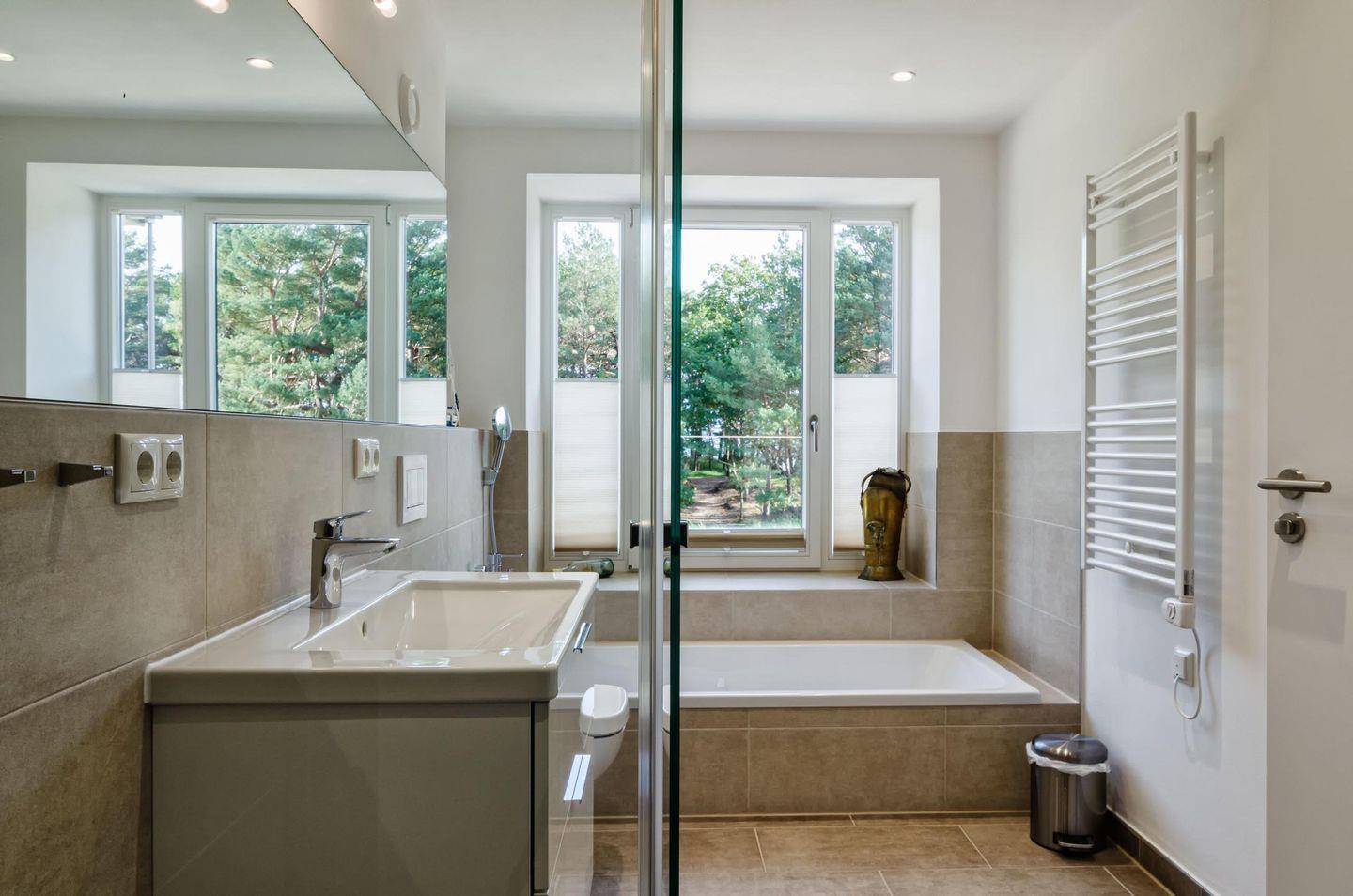 - Badezimmer 1: Badezimmer mit Dusche und Badewanne, Haartrockner