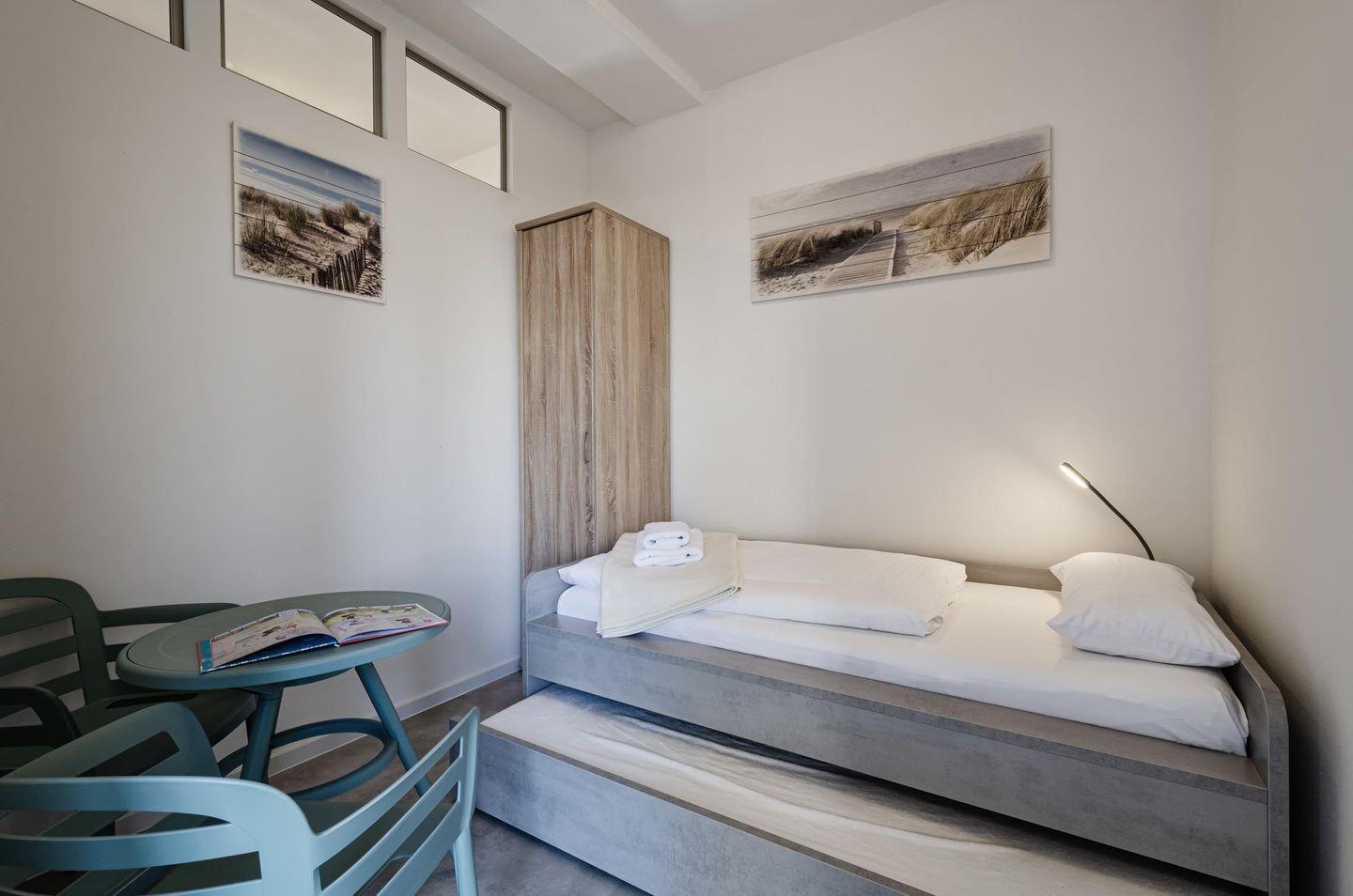 - Schlafzimmer 2: 1 Einzelbett (100x200) (ausziehbar für 2 Personen), kein Fenster