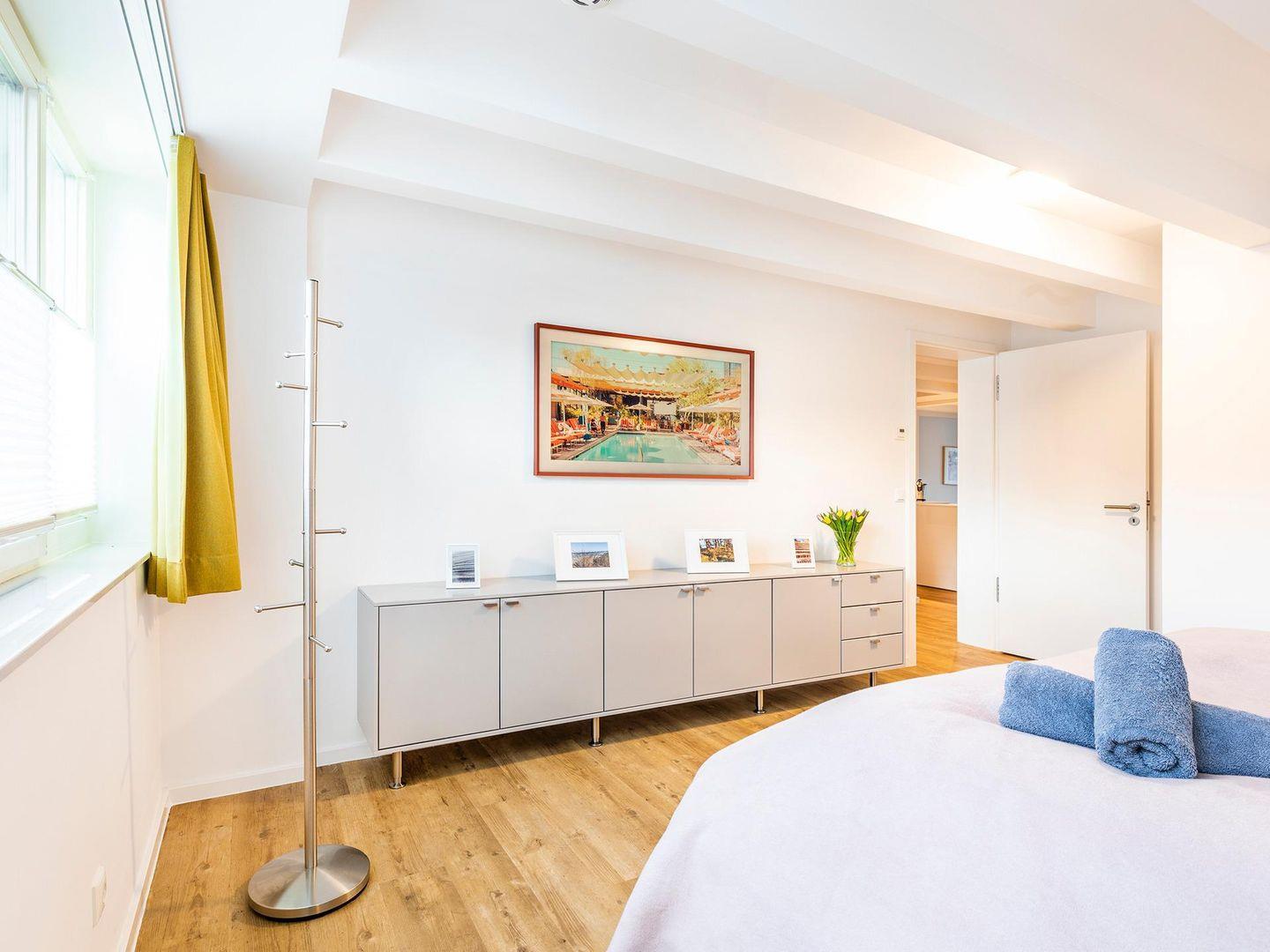 Im EG befindet sich der Garderobenbereich, ein Gäste-WC und meerseitig ein großes "Prinzessinnenschlafzimmer" mit eigener Terrasse und komfortabler Liegeinsel. Im 1. OG befindet sich meerseitig der großzügige offene Wohnbereich mit exzellenter Küchenausstattung, Weinkühlschrank und ein "Quooker Wasserhahn", der Ihnen auch gekühltes sowie kochendes Wasser auf Knopfdruck bietet. Eine große Sofalandschaft, eine bodentiefe Panoramaglasfront und ein 16 m² großer Balkon mit Loungemöbeln lässt Sie mit Blick aufs Meer herrlich entspannen.