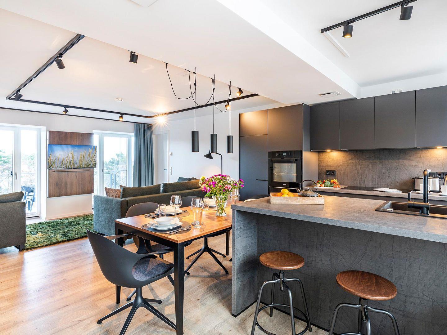Die Ferienwohnung bietet eine herrliche Aussicht auf die Dünenlandschaft und den Küstenwald. Eine Fußbodenheizung sorgt für angenehme Wärme und der Internetanschluss (WLAN) ist im Preis inklusive.