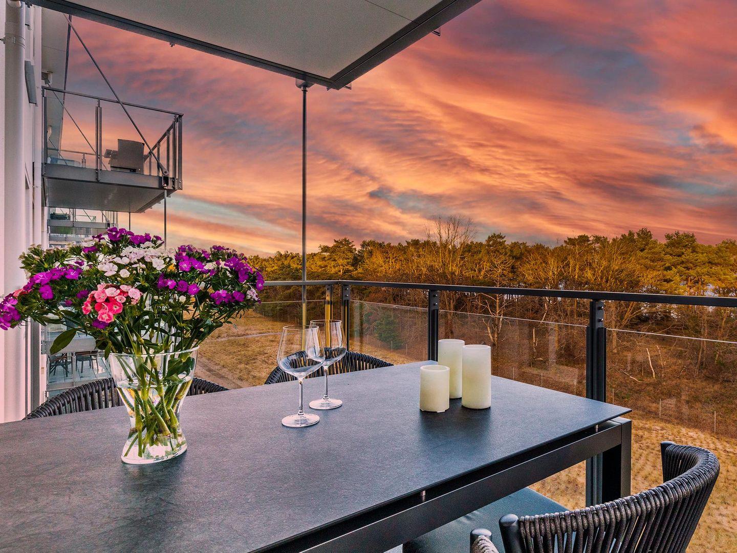 Modernes Meerblick-Apartment Hideaway in Prora mit Balkon, Strandkorb und direktem Strandzugang.