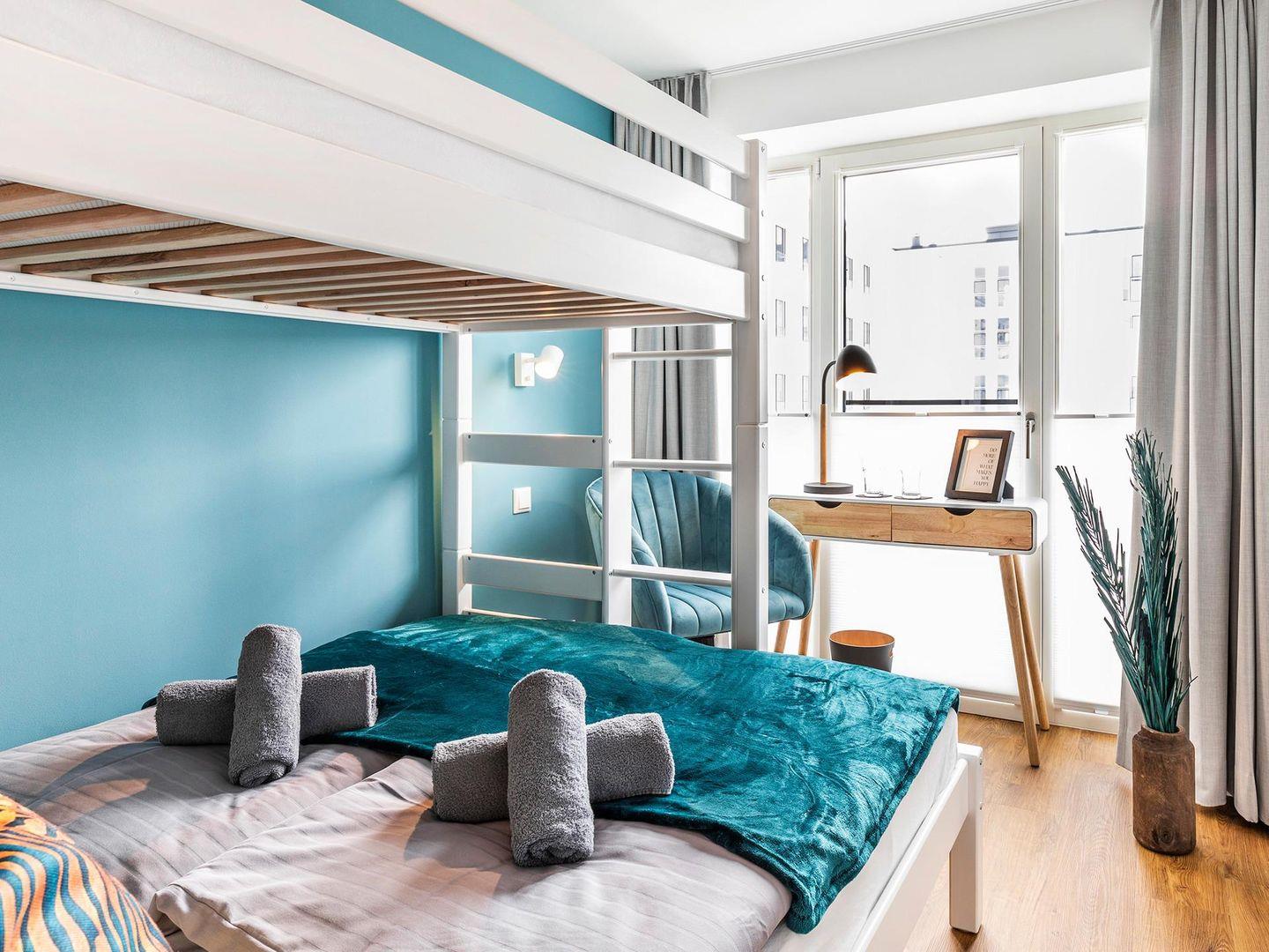 - Schlafzimmer 2: Etagenbett (140x200) / (90x200), TV