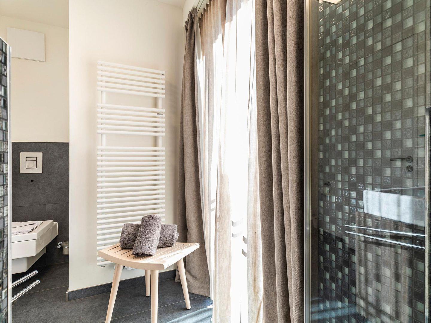 - Badezimmer mit Fenster, Regendusche, WC, Haartrockner