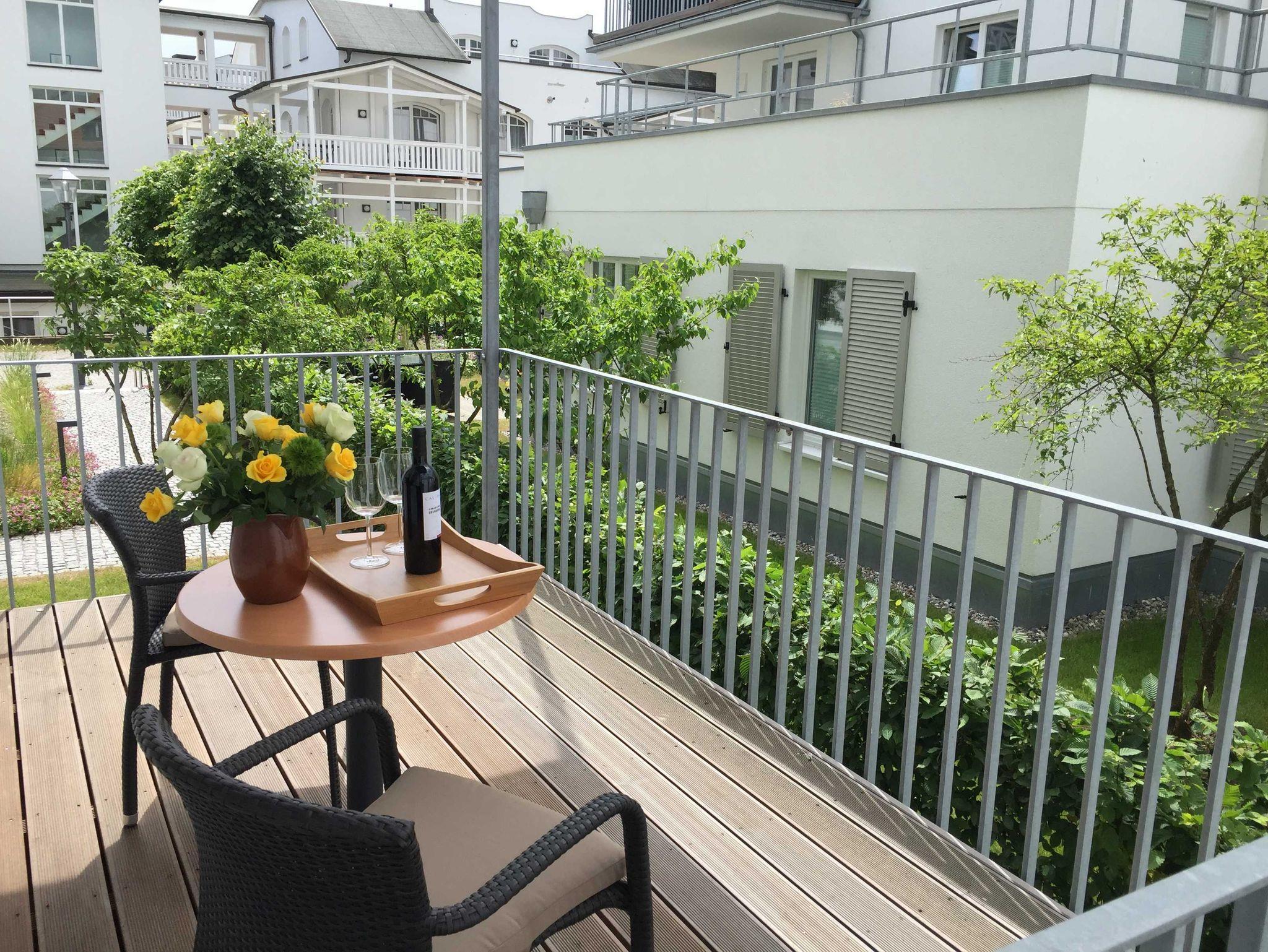 Moderne Ferienwohnung 01 in der Villa Seeblick mit Balkon und seitlichem Meerblick direkt an der Strandpromenade von Binz.
