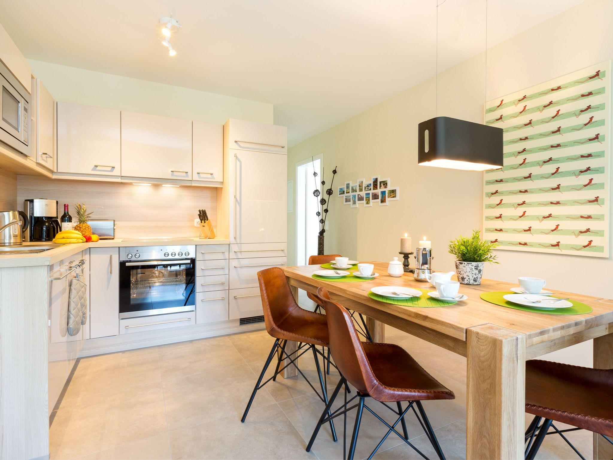 Sie erwarten helle und modern eingerichtete 2 - 3 Zimmer-Ferien-Apartments, mit voll ausgestatteten Küchen mit Markengeräten, luxuriösem Interieur sowie einem großem überdachten Balkon, Pkw-Stellplatz am Haus und eine Waschmaschine und Trockner.