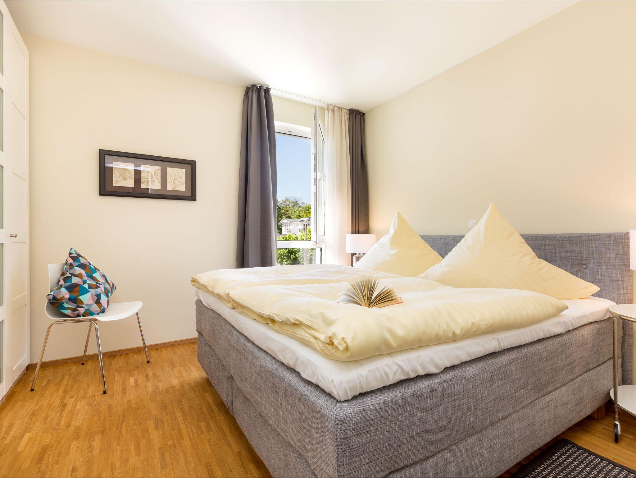 Die beiden hellen Schlafräume sind mit Doppelbetten und Allergiker freundlichen und klimaregulierenden Matratzen ausgestattet. Von einem der beiden Schlafzimmer haben Sie einen weiteren Zugang zum Balkon.