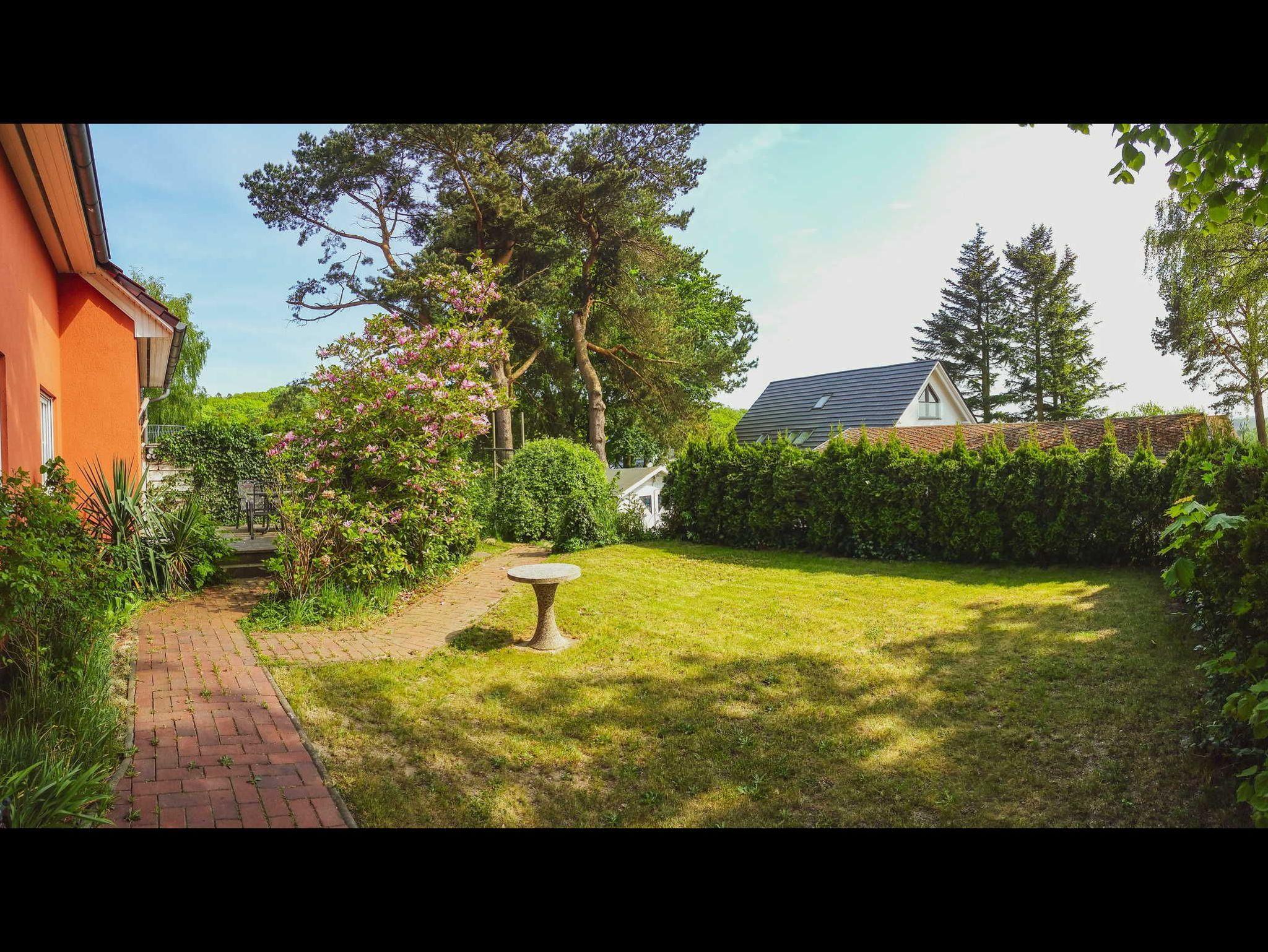 Gemütliche Ferienwohnung mit Terrasse und Garten im Ostseebad Binz, ideal für Familien und mit Parkplatz am Haus.