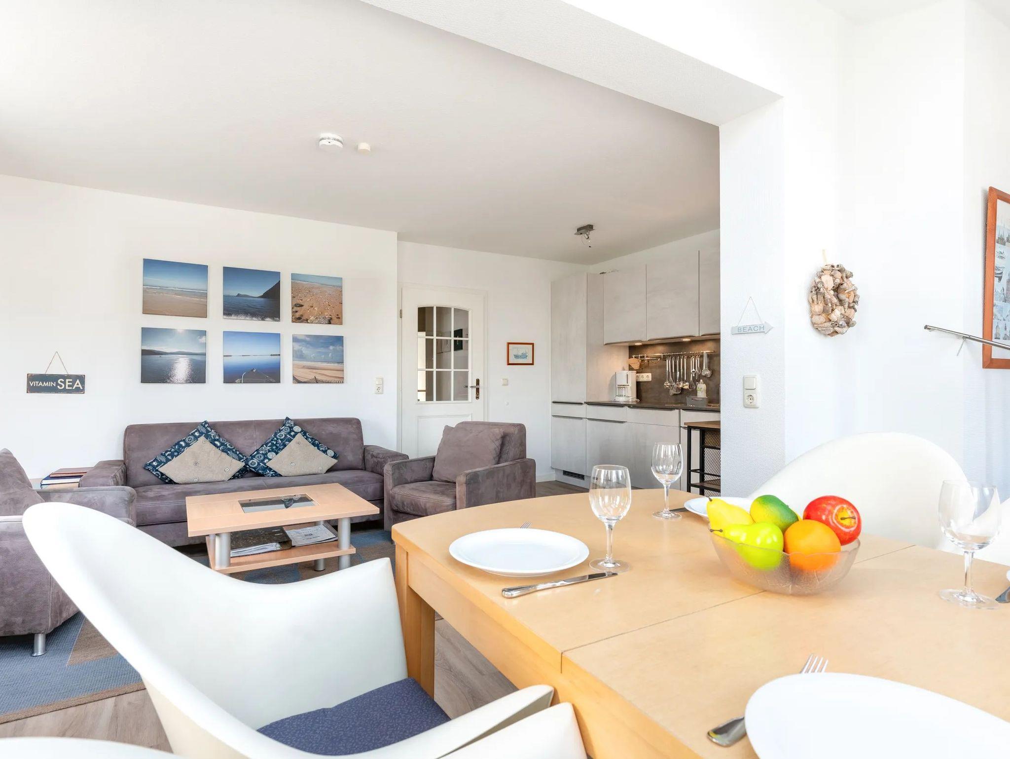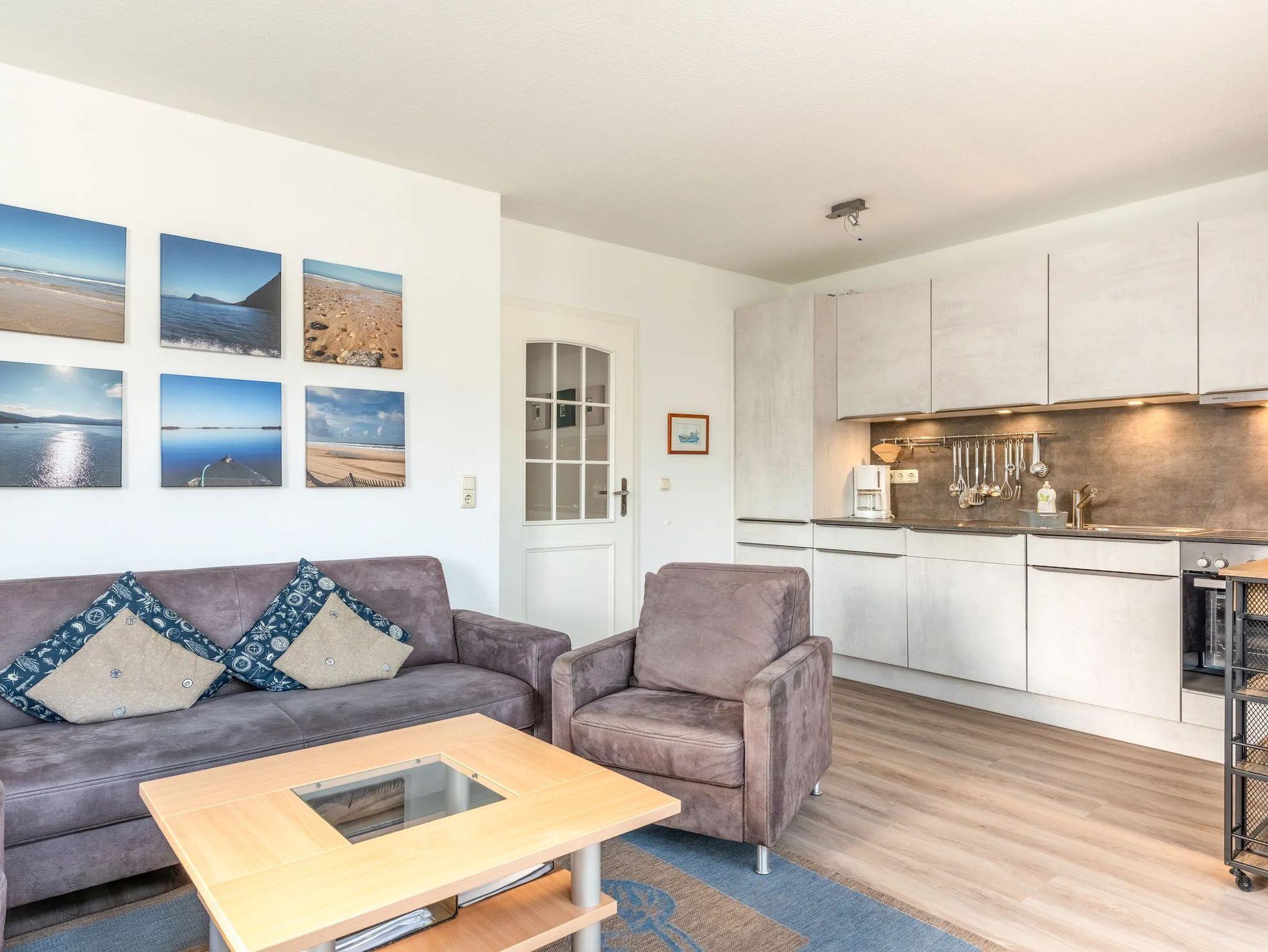 Der Mittelpunkt Ihres Aufenthalts ist der lichtdurchflutete Wohn- und Essbereich, der durch sein offenes Raumkonzept besticht. Hier verschmelzen Entspannung und Genuss zu einer harmonischen Einheit. Die integrierte, moderne Küche ist ein wahrer Blickfang und lässt mit ihrer Vollausstattung ? vom Backofen über den Geschirrspüler bis hin zu praktischen Gefriermöglichkeiten ? keine Wünsche offen. Während Sie in der Küche kulinarische Köstlichkeiten zubereiten, lädt die gemütliche Couchecke mit eigenem TV zum Verweilen ein. Der harmonisch integrierte Essbereich bietet zudem den idealen Rahmen für gemeinsame Stunden und ausgiebige Frühstücksmomente in einem stilvollen Ambiente.