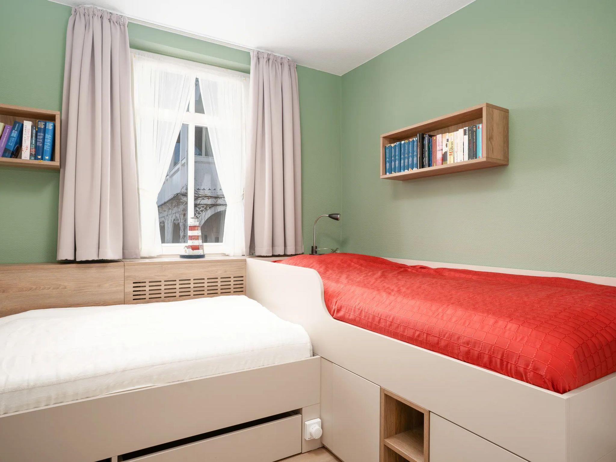 Das zweite Schlafzimmer wurde für Sie komplett umgestaltet und modernisiert. Anstelle der ursprünglichen Schlafcouch erwarten Sie hier nun zwei hochwertige Einzelbetten, die deutlich mehr Flexibilität und erstklassigen Schlafkomfort bieten. Auch dieser Raum verfügt über einen eigenen Kleiderschrank und fügt sich durch das neue Designkonzept nahtlos in das moderne Gesamtbild der Wohnung ein.