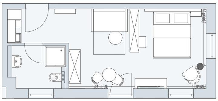 - Wohn-/Schlafzimmer, 3 Personen