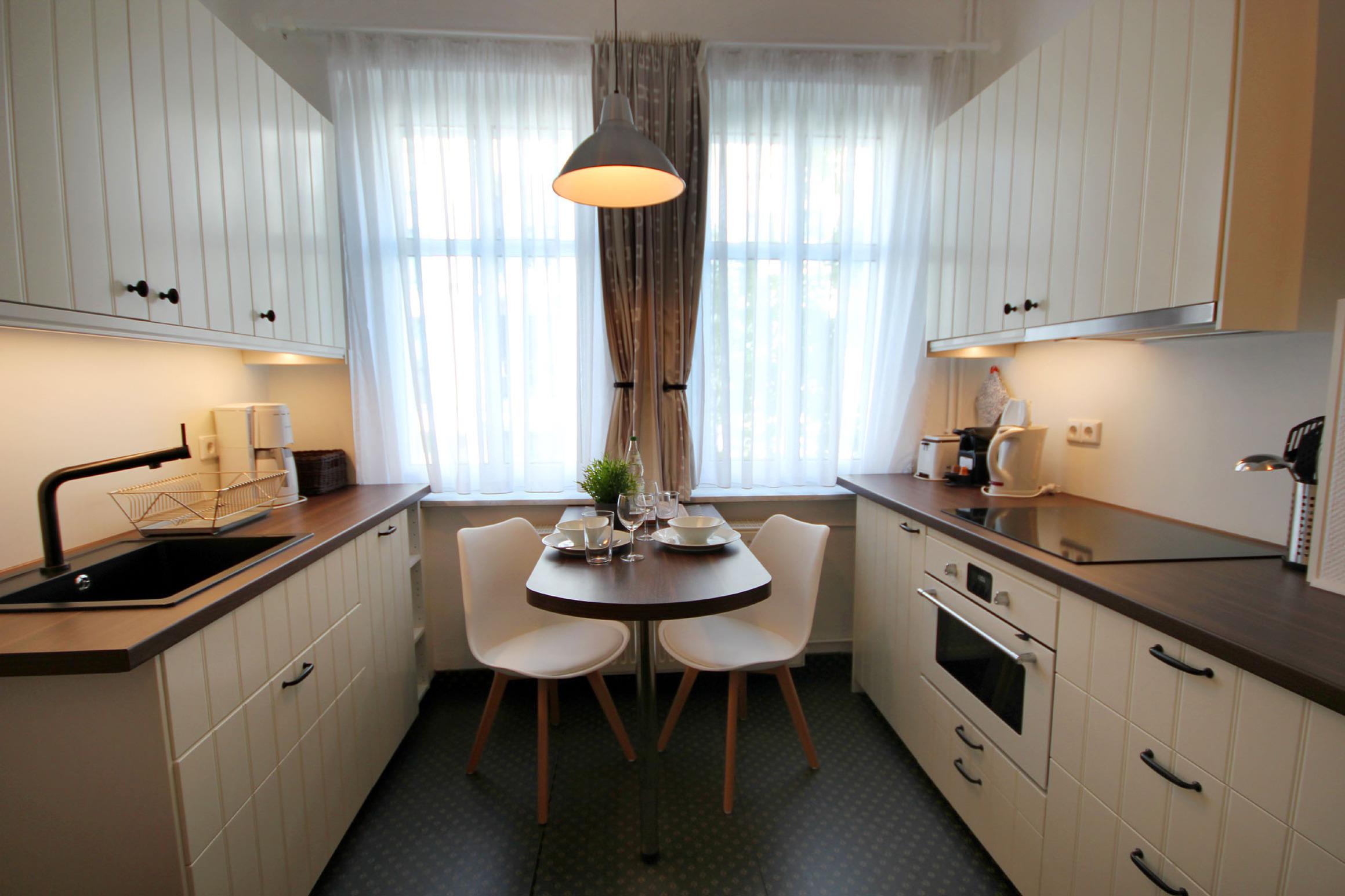 Ihre gemütliche 2-Raum-Nichtraucherwohnung 90721 Sonnenaufgang verfügt über eine Größe von ca. 50 qm und befindet sich in der 1. Etage des Hauses. Hier können bis zu 3 Personen einen angenehmen Aufenthalt genießen. Vom überdachten Balkon genießen Sie einen tollen Blick bis zur Strandpromenade. Diese freundliche Wohnung ist aufgeteilt in einen Wohnraum mit integrierter Küche, ein Schlafzimmer sowie ein modernes Duschbad mit Waschtisch und WC. Das Wohnzimmer begrüßt Sie mit einem Flachbild-TV, einem Schlafsofa (1,60m x 2m), welches für eine zusätzliche Person eine Schlafmöglichkeit bietet sowie zwei gemütlichen Sesseln. Das geräumige Schlafzimmer mit Zugang zum Balkon erwartet Sie mit einem Doppelbett (1,60m x 2m) sowie einem geräumigen Kleiderschrank. Die neuwertige Küchenzeile ist mit Kühlschrank mit kleinem Gefrierfach, Cerankochfeld, Nespresso-Maschine, Backofen, Geschirrspüler, Kaffeemaschine, Wasserkocher und Toaster komplett ausgestattet. Highlights: Kostenfreies WLAN sowie ein wohnungseigener PKW-Stellplatz direkt am Haus. Haustiere sind herzlich willkommen.