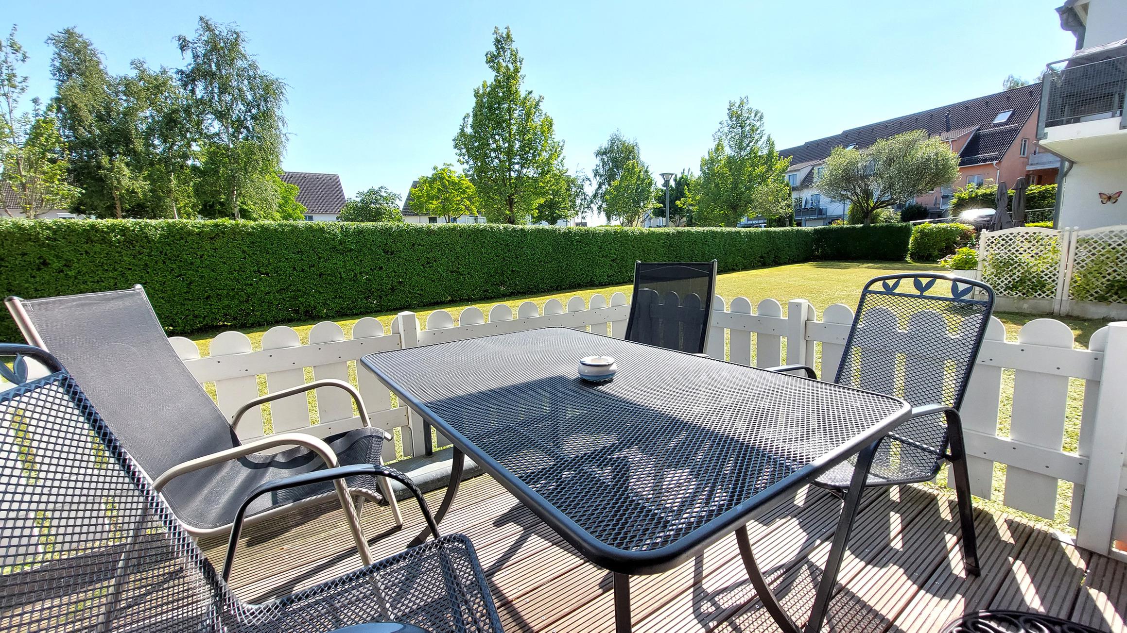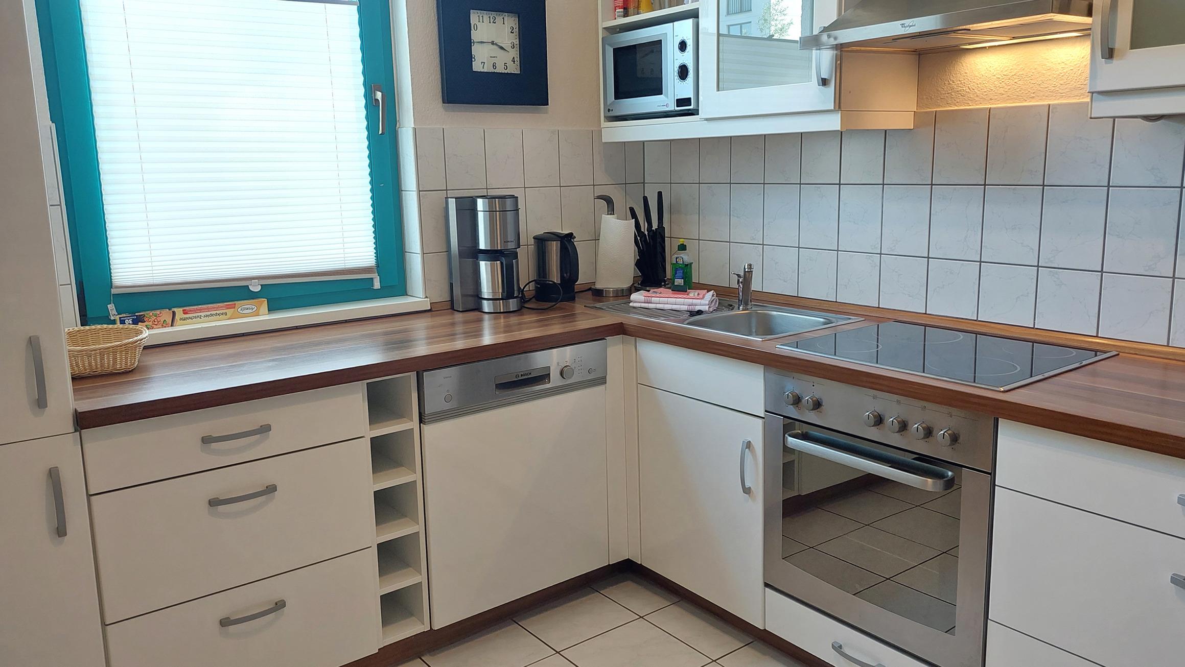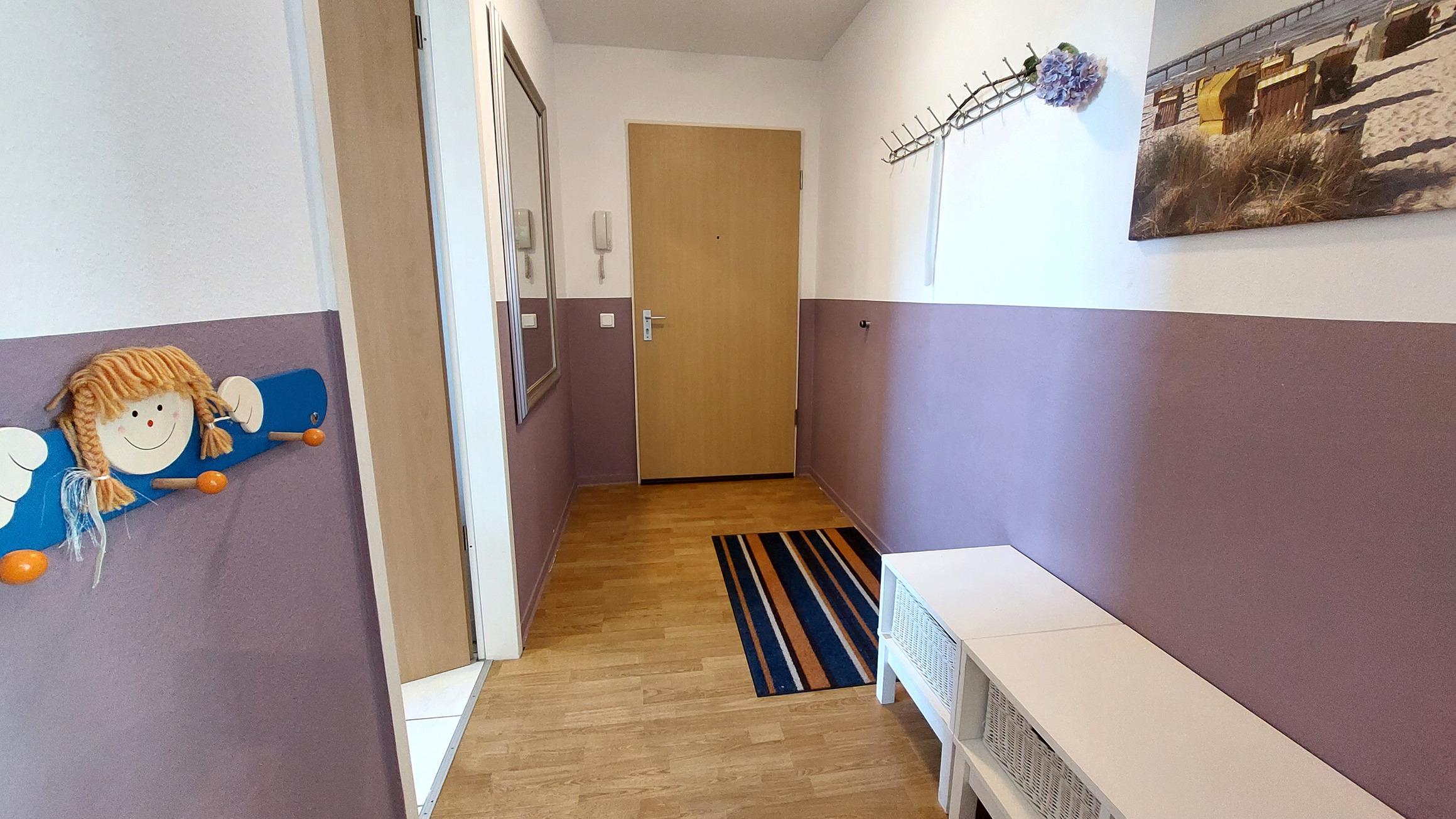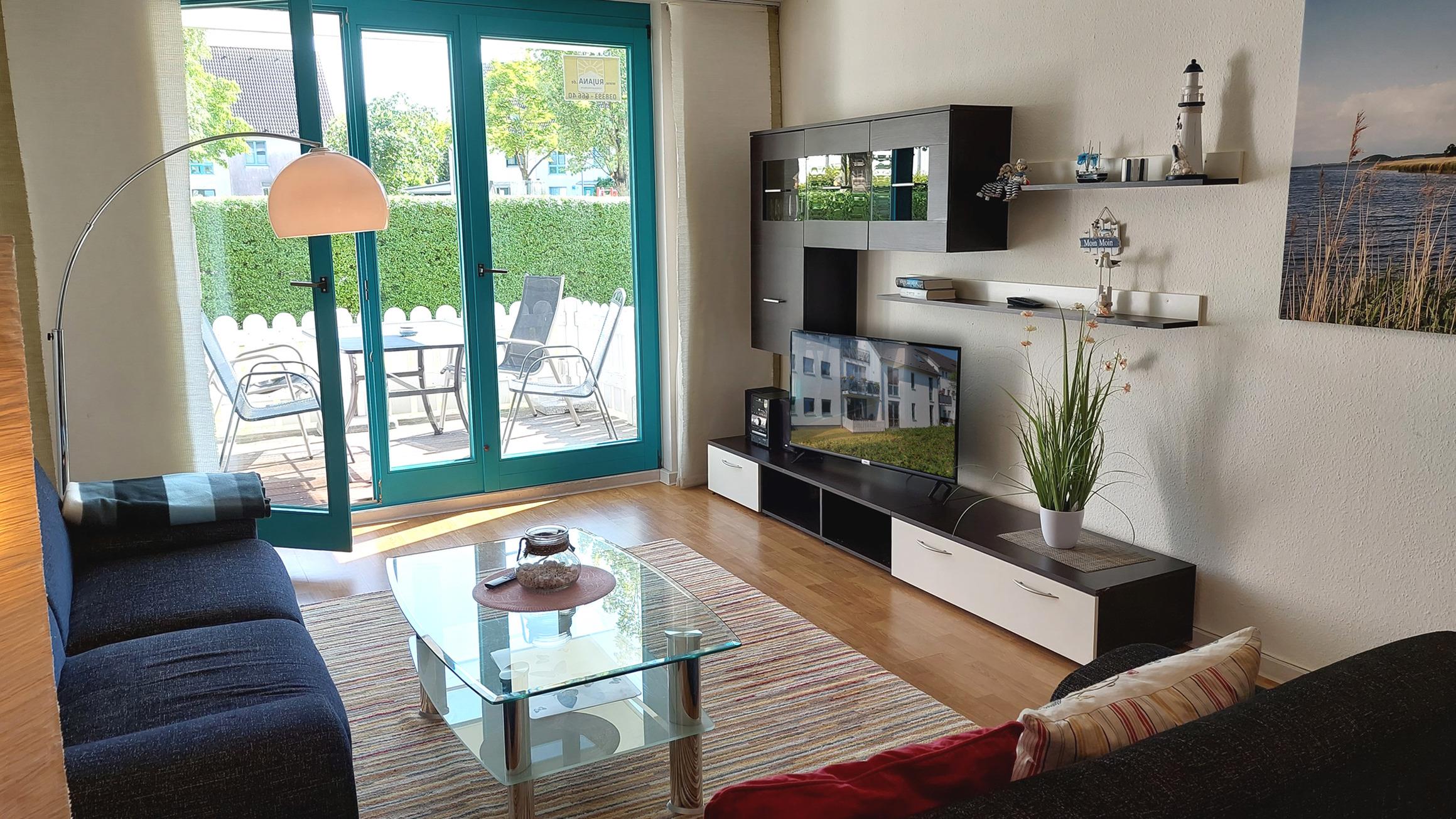 Die Wohnung verfügt über einen separaten Eingang von dem Sie in den vorgelagerten Flur gelangen. Im Wohnbereich mit angrenzendem Essbereich erwartet Sie eine gemütliche Sitzgruppe und gelangen von hier auf die möblierte Terrasse. Die technische Einrichtung umfasst einen Flachbildfernseher, DVD-Player, Musikanlage sowie einen kostenfreien W-LAN-Zugang. Im separaten Küchenbereich finden Sie eine komplette Küchenzeile mit zusätzlicher Sitzmöglichkeit sowie Backofen, Cerankochfeld, Mikrowelle, Geschirrspüler, Kaffeemaschine, Wasserkocher, Toaster und weitere Küchenhelfer vor. Das Hauptschlafzimmer verfügt über ein Doppelbett mit hochwertigen Matratzen sowie über einen Kleiderschrank. Im zweiten Schlafbereich finden Sie zwei Einzelbetten sowie eine kombinierte Anbauwand mit Kleiderschrank vor. Für die kleinen Gäste stehen ein Kinderreisebett mit Extra-Kindermatratze, ein mobiler Wickeltisch, eine Baby-Badewanne, Kindertritt für das Waschbecken sowie 2 Marken-Kinderhochstühle bereit. Das Bad ist ausgestattet mit einer Badewanne, Waschbecken [&] WC. Zusätzlich bietet Ihnen diese Wohnung eine Münzwaschmaschine. Ein Pkw-Stellplatz befindet sich am Haus. Ihre Fahrräder können Sie in dafür vorgesehene Räume direkt am Haus unterstellen.