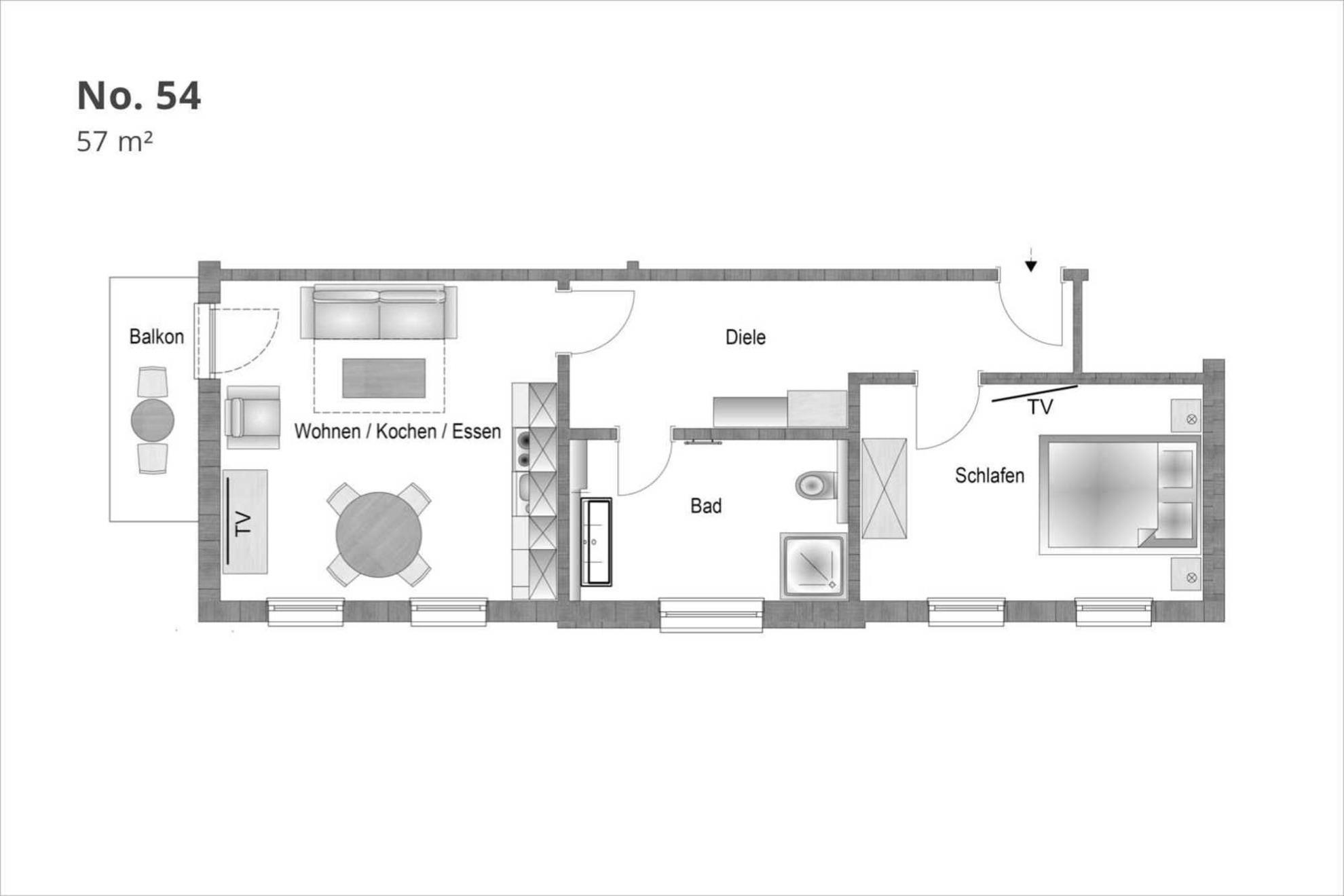 Ihre moderne Wohnung 90619 (Nichtraucher) befindet sich im 1. Obergeschoss im Haus Min Hüsung und verfügt über einen Balkon. Die, in 2017, voll sanierte 2 Zimmer - Wohnung hat eine Größe von ca. 57 qm und ist mit bis zu 4 Personen belegbar.