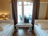 Im zweiten Schlafbereich finden Sie zwei Einzelbetten, einen weiteren Zutritt zum Balkon sowie eine Verdunklungsmöglichkeit vor.