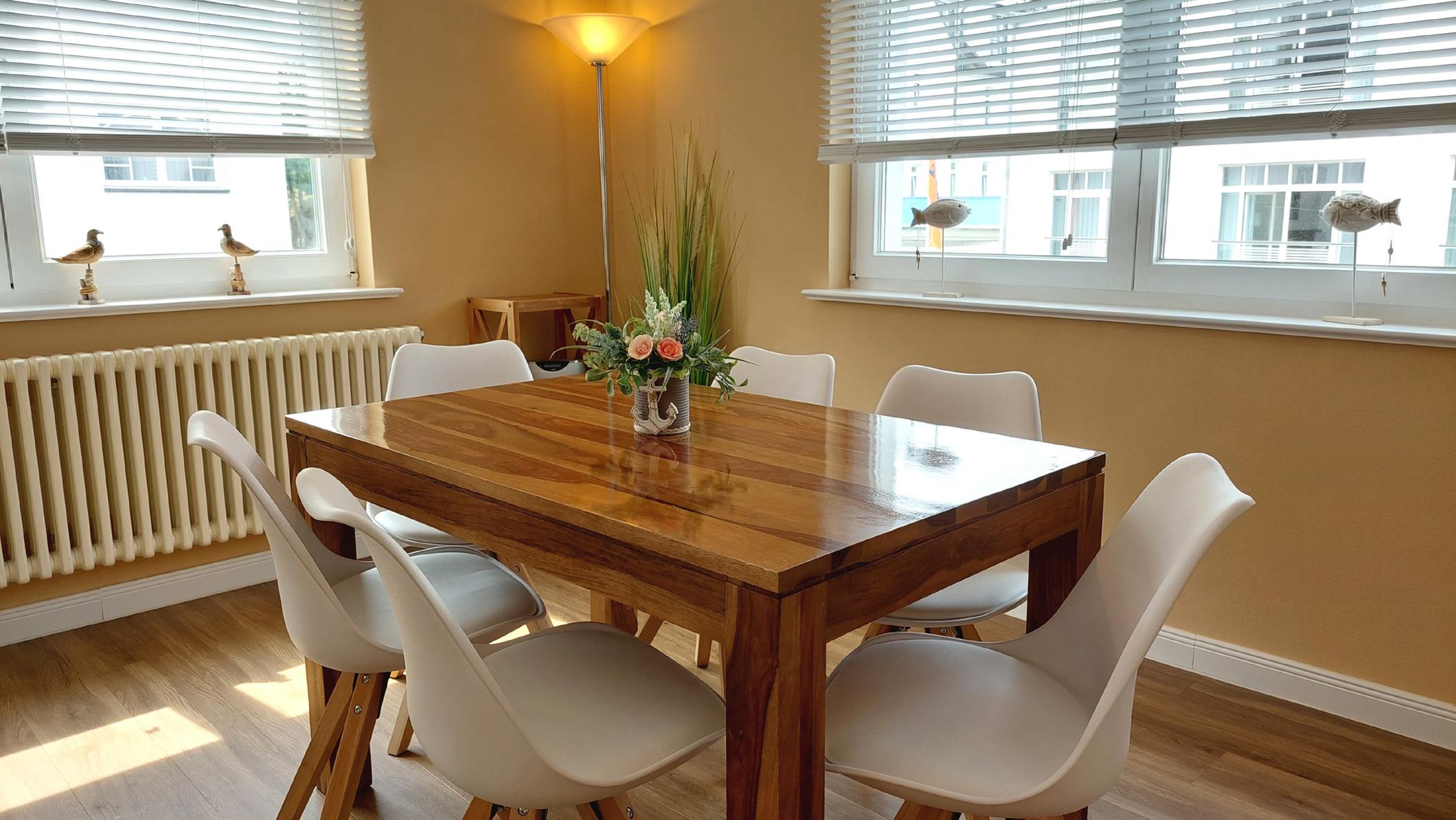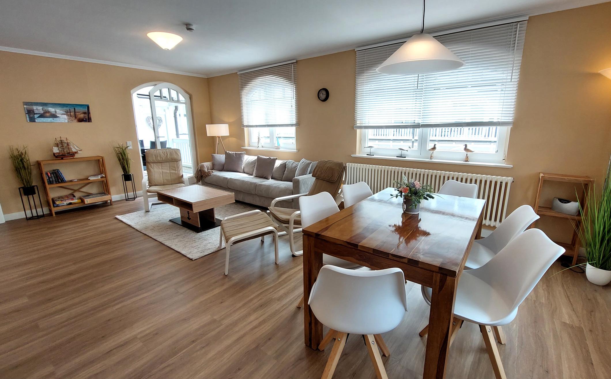 Highlight ist der großzügige und helle kombinierte Wohn- und Essbereich mit großer Sitzlandschaft und Esstisch für 6 Personen.