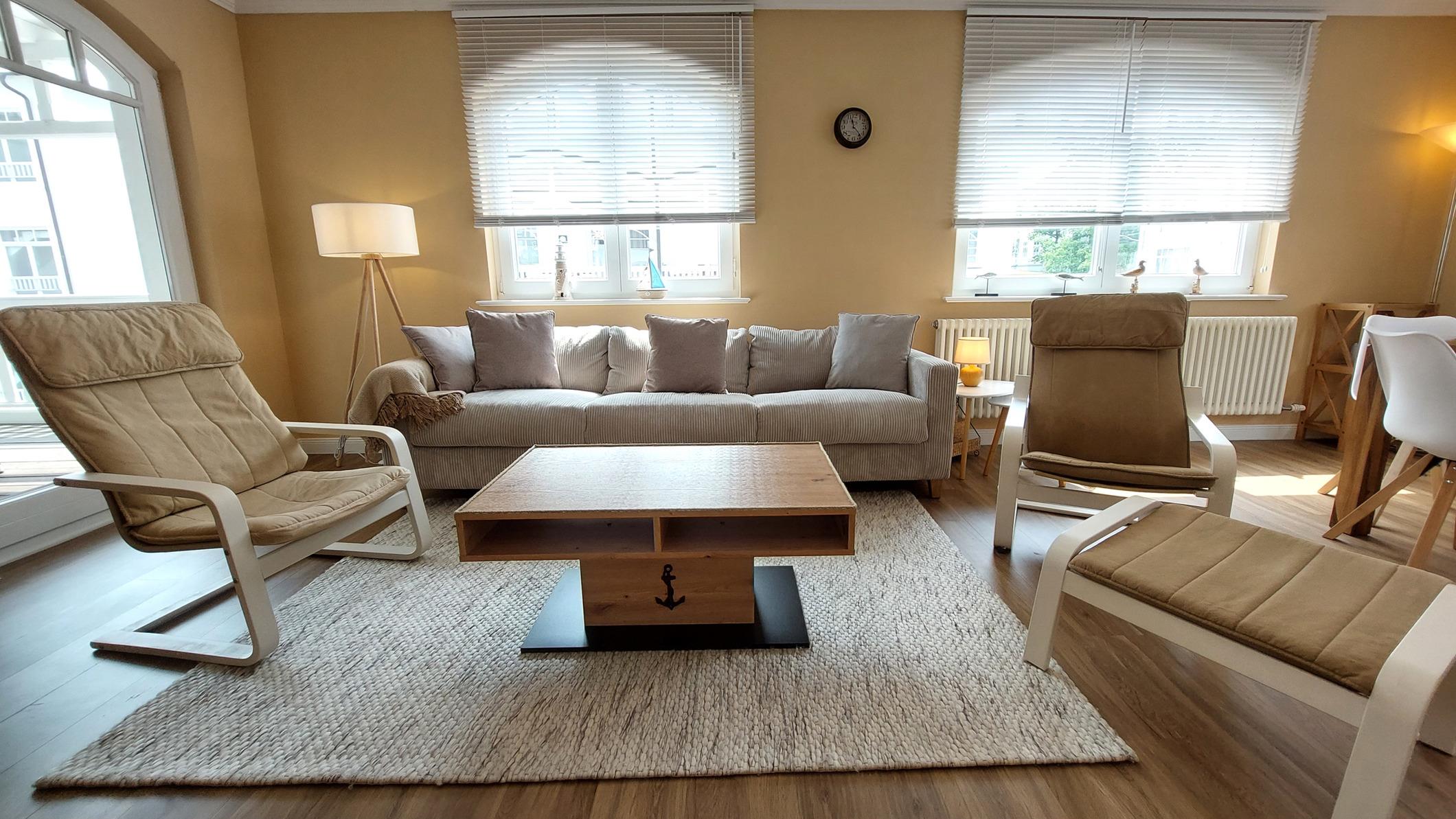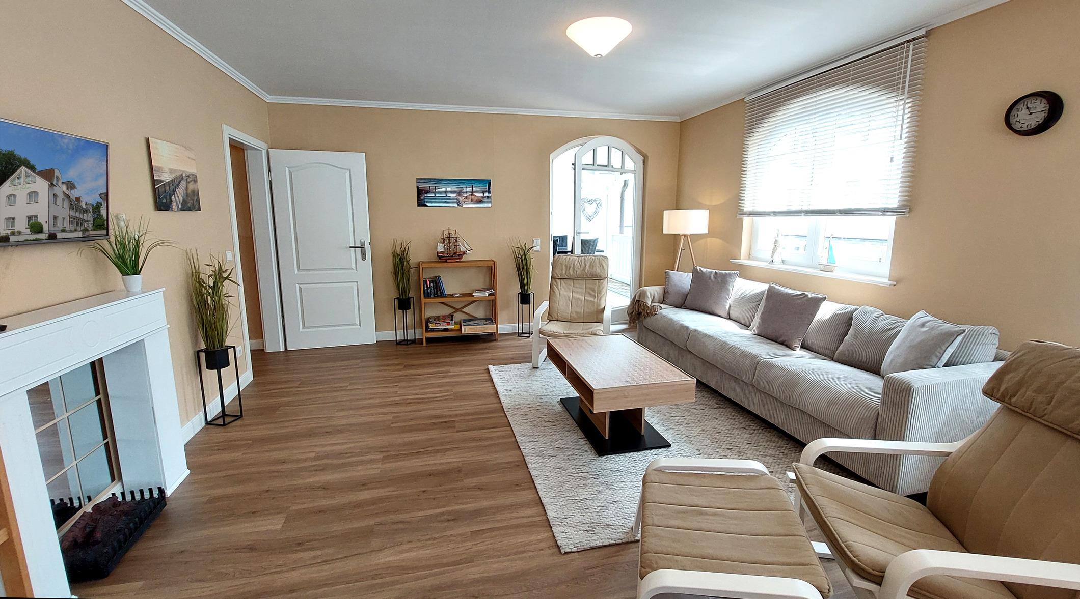 Die familienfreundliche 3,5-Zimmer Nichtraucherwohnung 209RB567 wurde 2023 komplett saniert und neu eingerichtet. Sie befindet sich im 1. Obergeschoss in der Dependance der Villa Gudrun, ist ca. 89 qm groß.
