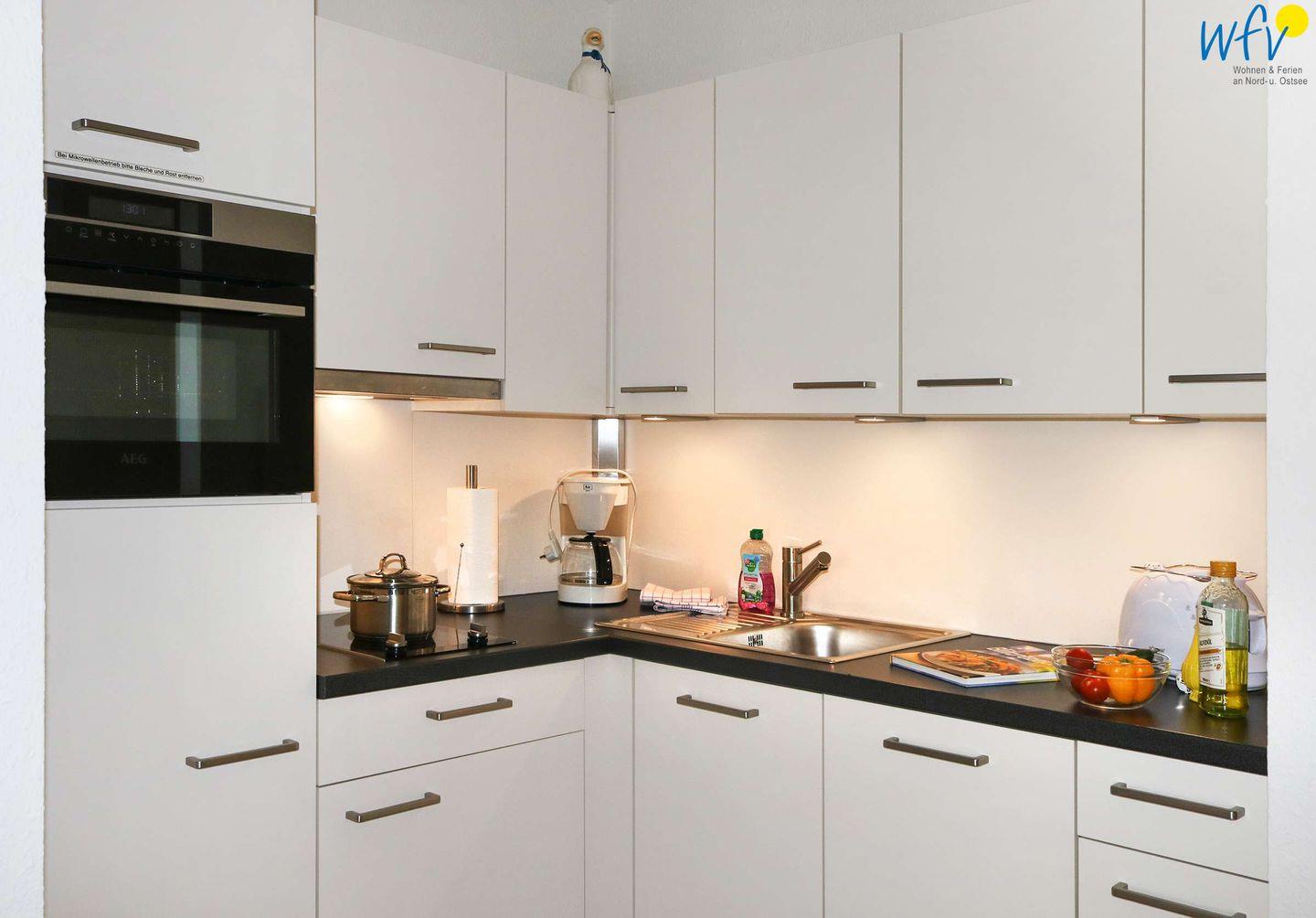 Für eine bequeme Selbstverpflegung verfügt die Küche der Ferienwohnung u.a. über einen 2-Plattenherd, eine Mikrowelle und einen kleinen Backofen. Viele Restaurants und Bistros im nahegelegenen Binzer Ortskern und auf der Promenade verwöhnen Sie außerdem mit einer vorzüglichen Ostseeküche! Oftmals sogar auf sonnigen Terrassen mit Meerblick...