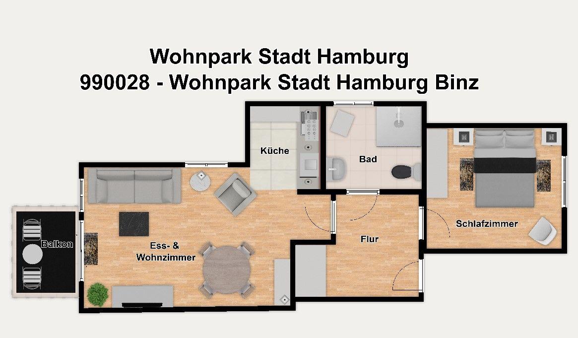 Moderne Ferienwohnung mit Balkon im Wohnpark Stadt Hamburg in Binz, ideal für entspannte Urlaubstage auf Rügen.