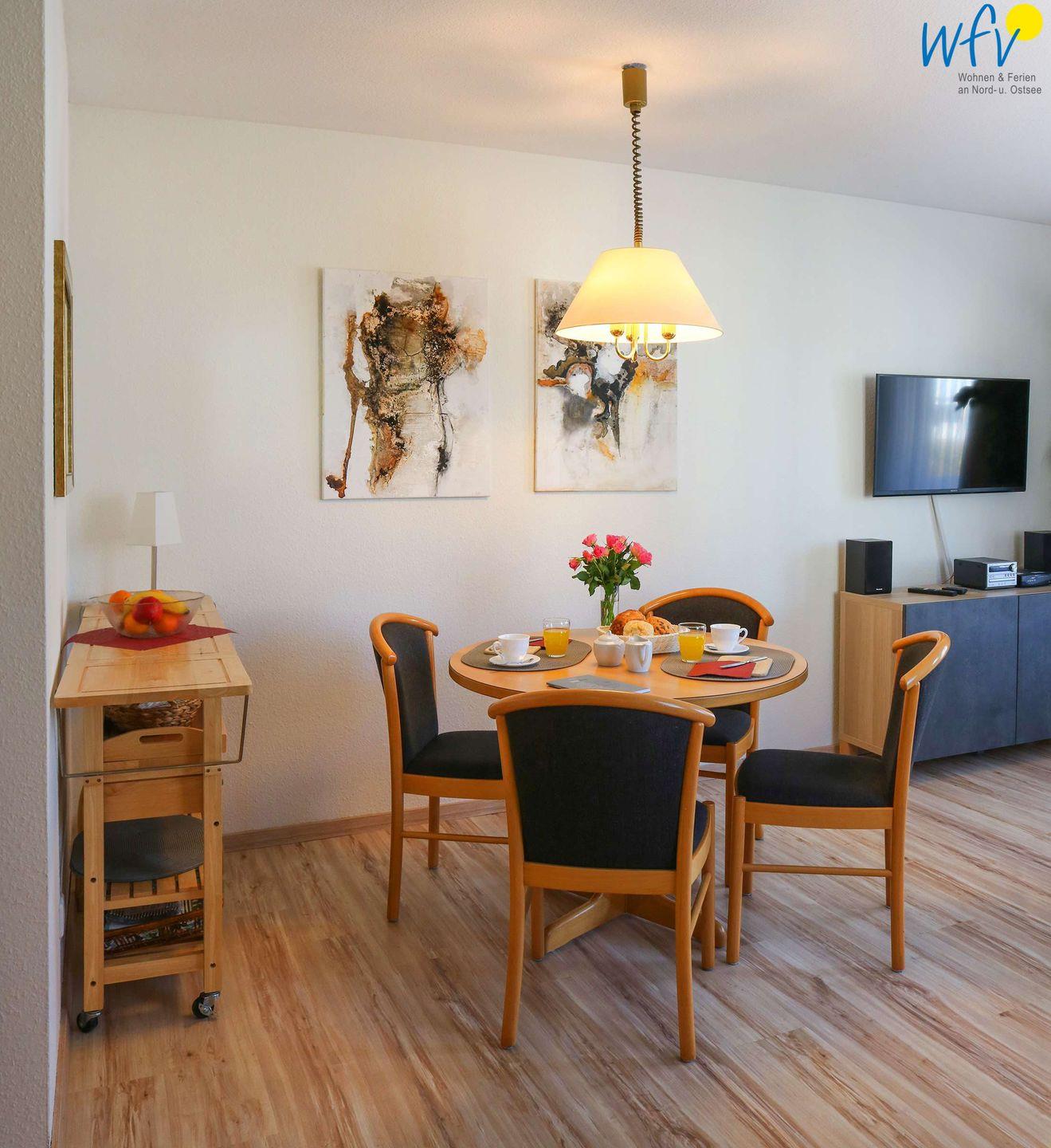 Ein helles Wohnzimmer, eine im Wohnraum integrierte Küche, ein separates Schlafzimmer mit Doppelbett (2 x 90 cm x 200 cm), ein modernes Duschbad sowie ein schöner Balkon bieten Platz zum Wohlfühlen. Ob bei Filmabenden im gemütlichen Wohnzimmer mit Couchecke und modernem TV oder bei erholsamen Lesestunden auf dem Balkon - bei uns können Sie nach Herzenslust die Seele baumeln lassen!