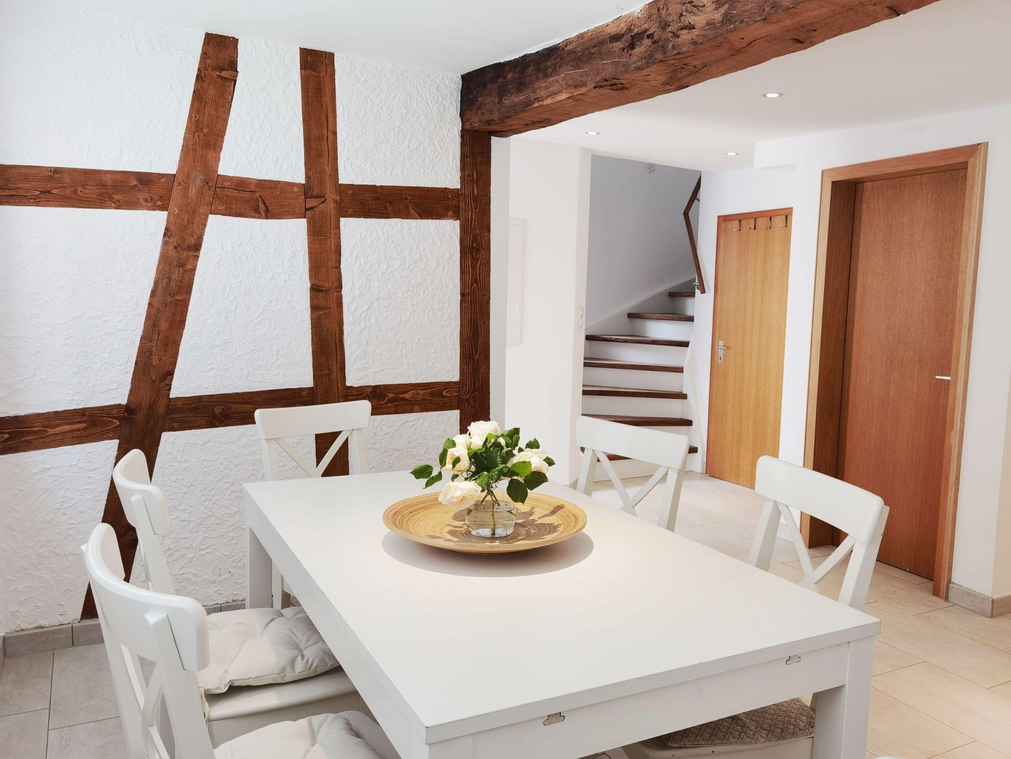 Die Wohnung befindet sich in einem rundum hochwertig sanierten alten Fachwerkhaus und ist nun modern mit liebevollen Details, gut durchdacht und stilvoll eingerichtet. Sie ist mit allem ausgestattet, was man braucht, um sich von der ersten Sekunde an einfach wohl zu fühlen: im Sommer sorgen kühle Lehmwände für ein angenehmes Ambiente und im Winter bringt die Fußbodenheizung wohlige Wärme.