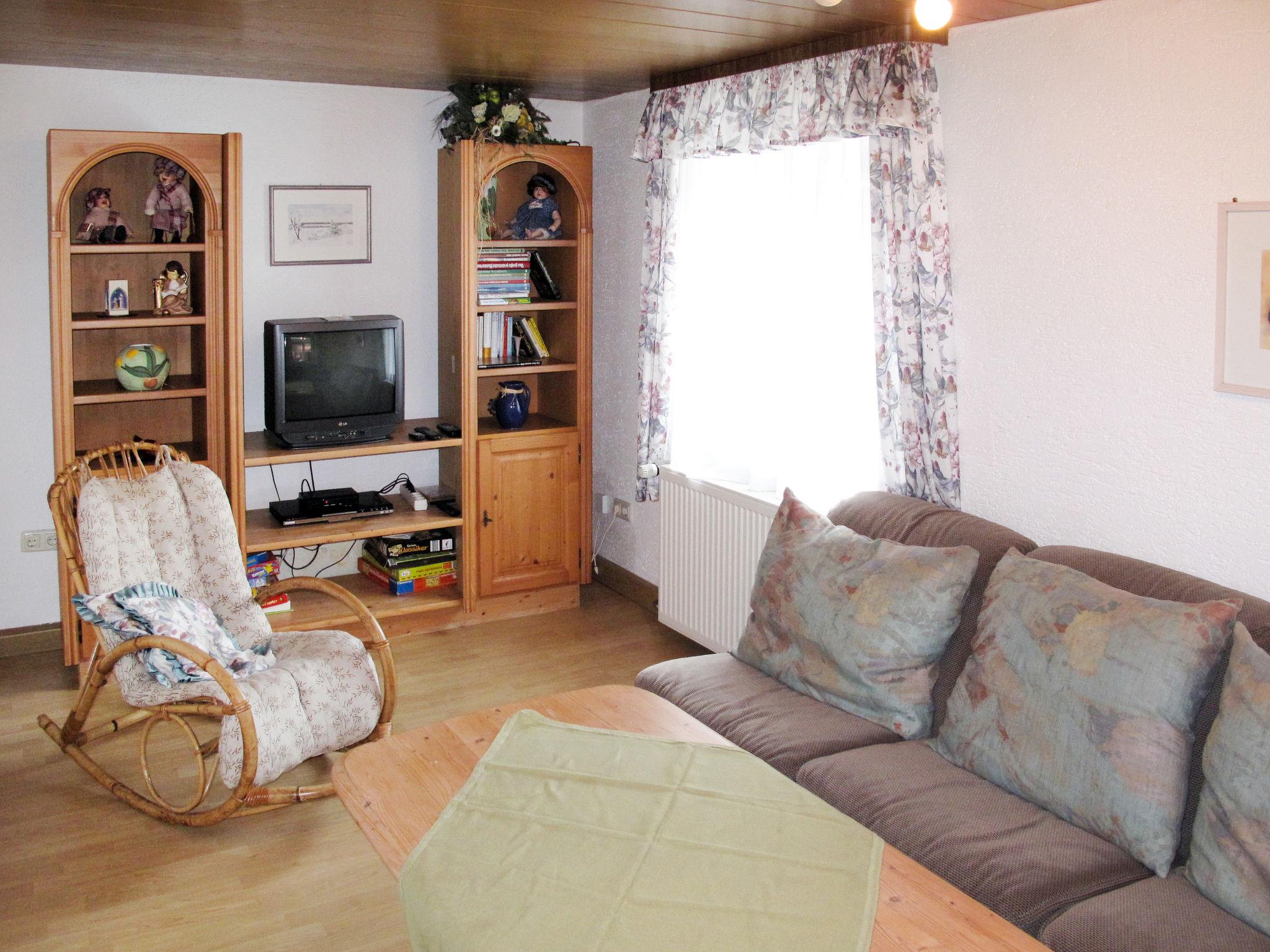 6-Zimmer-Haus 100 m2 auf 2 Stockwerken. Gemütlich eingerichtet: Wohnzimmer mit Wintergarten mit Sat-TV, CD und DVD. Ausgang zum Garten. Wohnküche (Backofen, Geschirrspüler, 4 Glaskeramikplatten, Toaster, Wasserkocher, elektrische Kaffeemaschine) mit Essecke. Dusche/WC, sep. WC. Obergeschoss: 1 Zimmer mit 1 Doppelbett. Durchgangszimmer mit 1 Bett und 1 Doppelbett. 1 Zimmer mit 1 Doppelbett. Ölheizung. Gartengrill, Liegestühle. Zur Verfügung: Waschmaschine, Kinderhochstuhl, Babybett. Internet (Wireless LAN, gratis). Bitte beachten: Nichtraucher-Haus. Rauchmelder, Feuerlöscher.