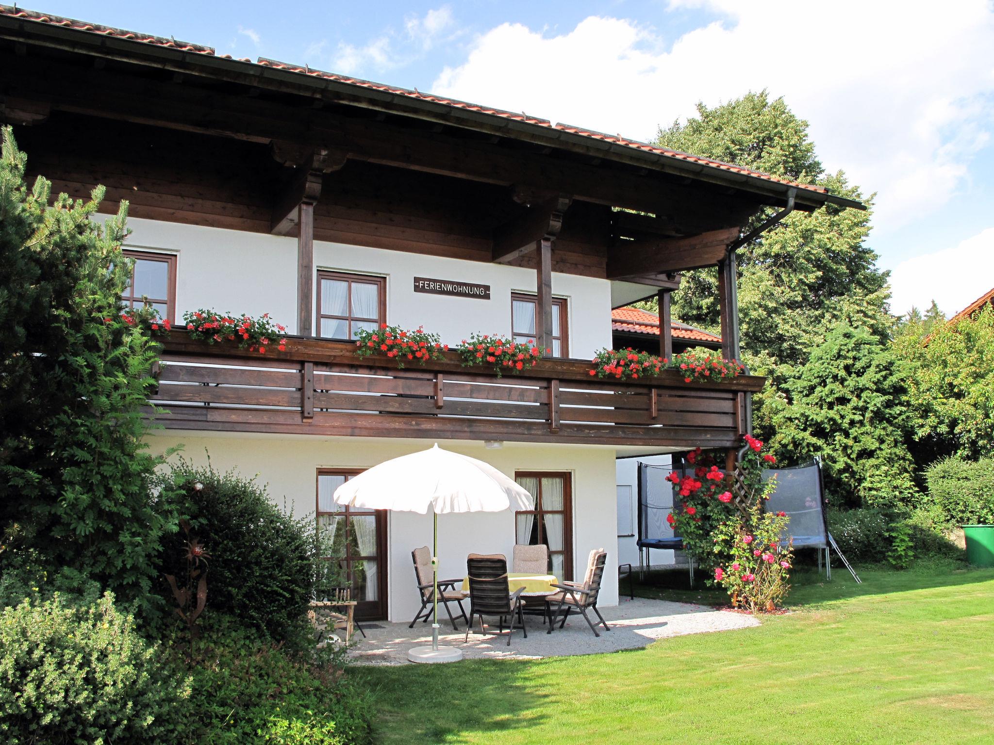 Zweifamilienhaus "Janik". Oberhalb von Bischofsmais, 500 m vom Zentrum von Bischofsmais, 18 km vom Zentrum von Deggendorf, 63 km vom Zentrum von Passau, in einem Wohnquartier. Zur Alleinbenutzung: Grundstück 700 m2 mit Obstgarten. Feuerstelle. Im Hause: Tischtennis. Zur Verfügung: Schlitten. Brötchenservice. Treppenweg (16 Stufen) bis zum Haus. Parkplatz auf dem Grundstück. Supermarkt 6.5 km, Bushaltestelle "Rathaus" 550 m, Bahnstation "Triefenried" 9 km. Bergeisenbahn 3 km, Skilift 3 km, Langlaufloipe 500 m. Bitte beachten: Der Besitzer wohnt im selben Haus.