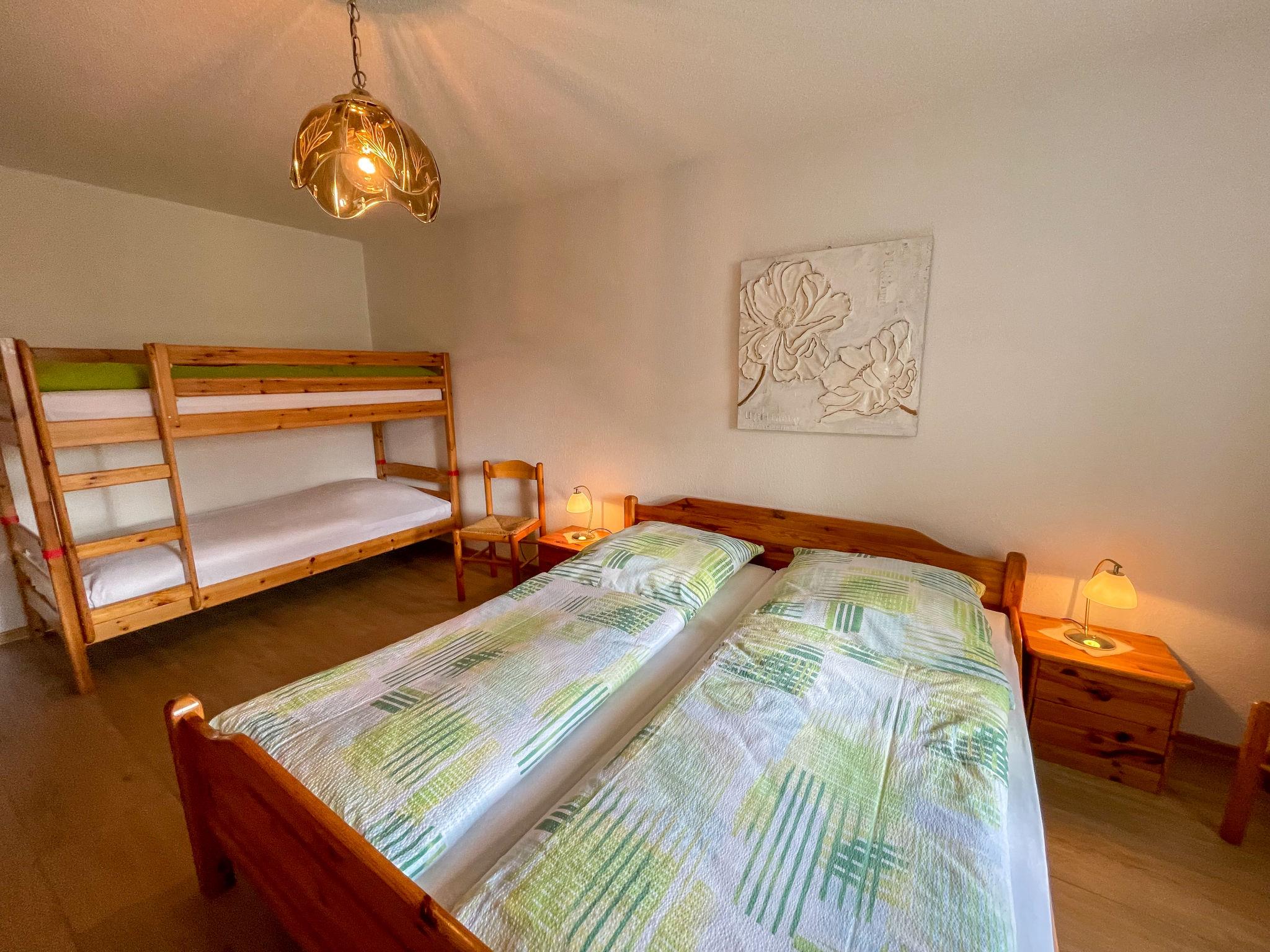 2-Zimmer-Wohnung 65 m2, im Erdgeschoss. Objekt geeignet für 2 Erwachsene + 2 Kinder. Zweckmässig und mit viel Holz eingerichtet: Wohnzimmer mit Sat-TV (Flachbildschirm), CD, Stereoanlage und DVD. Ausgang zur Terrasse. 1 Zimmer mit 1 x 2 Etagenbetten (80 cm, Länge 180 cm), 1 Doppelbett (200 cm, Länge 200 cm). Küche (4 Kochplatten, Backofen, Toaster, Wasserkocher, elektrische Kaffeemaschine) mit Esstisch. Bad/WC. Fussbodenheizung. Terrasse teilweise überdacht, Rasen 100 m2. Terrassenmöbel, Gartengrill. Schöne Sicht auf den Garten. Zur Verfügung: Kinderhochstuhl, Babybett. Internet (WLAN, gratis). Parkplatz (1 Auto) beim Haus. Bitte beachten: Nichtraucher-Unterkunft. Maximal 1 Haustier/Hund erlaubt. Eigener Eingang, Rauchmelder, Feuerlöscher. Trampolin vorhanden. Buchungen sind nur zu touristischen Zwecken erlaubt.