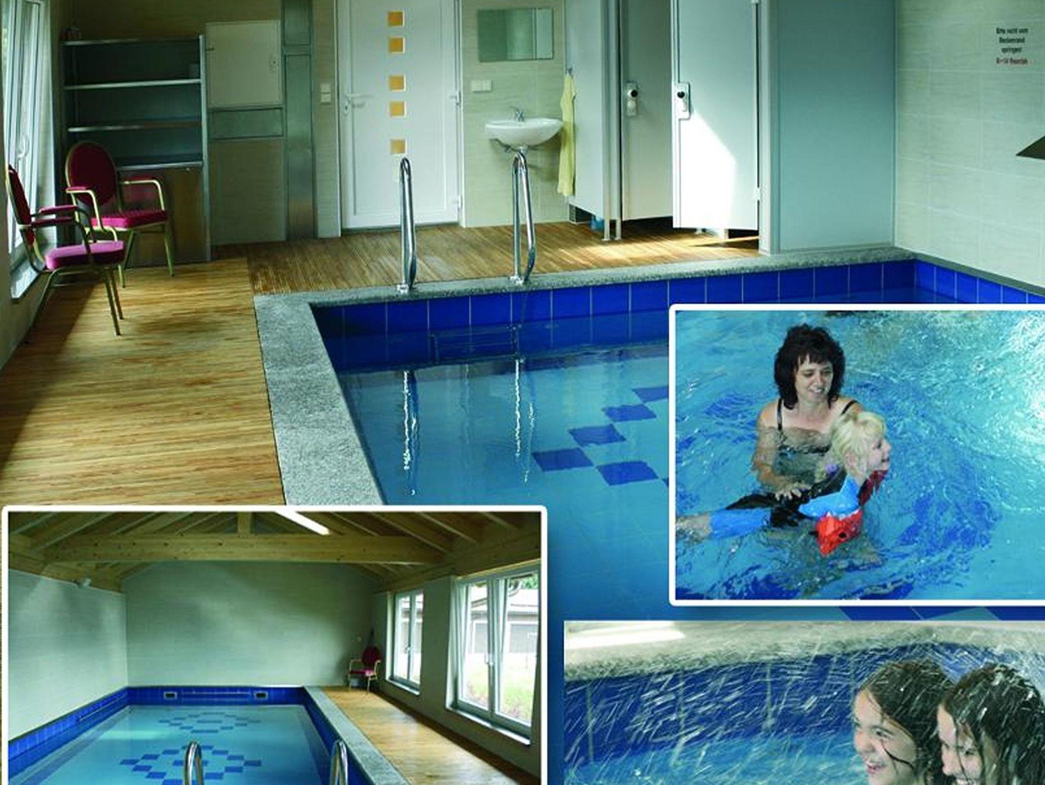 Unser Hallenbad mit einer Größe von 8m x 4m und einer Tiefe von 0,90m bis 1,34m steht Ihnen nur in der Sommersaison zur Verfügung. Es wird ausschließlich mit einer Solaranlage beheizt und hat eine Wassertemperatur von 20 Grad bis 28 Grad.