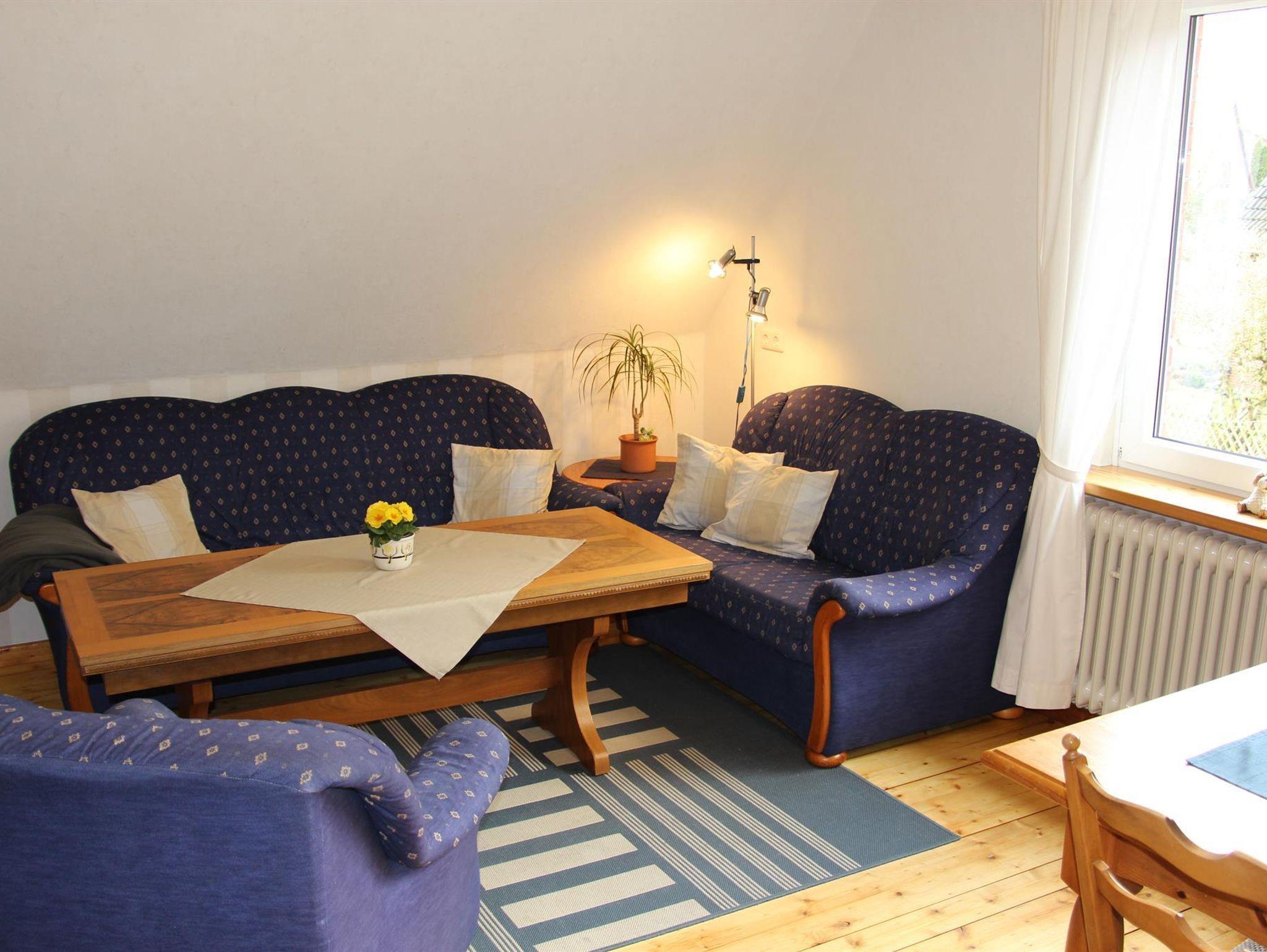 Direkt am Naturschutzpark erwartet Sie eine gemütliche, familienfreundliche Ferienwohnung, die sich im Obergeschoß unseres Hauses befindet.