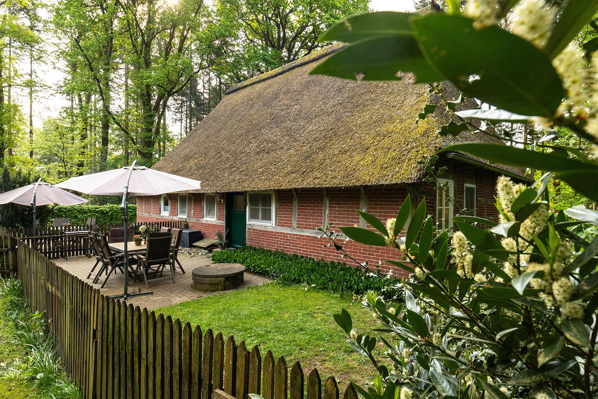 Das Reetdachhaus war das ehemalige Arbeiterhaus Hüßelhus (Häusslingshaus) des Hofes, wo bis Ende der 60er Jahre noch der Hüßel mit seiner Familie und seinen eigenen Tieren gelebt hat. Seid 1971 befinden sich in diesem Haus zwei Ferienwohnungen, die sich heute zu zwei wunderschönen, modernen Landhauswohnungen gewandelt haben. Jeder Doppelhaushälfte steht ein eigener abgeschlossener Garten mit Terrasse zur Verfügung. Die Wohnungen haben in 2 Schlafzimmern Platz für 4 Personen und verfügen über eine Schlafcouch im Wohnzimmer. Parken können Sie direkt vor dem Haus.