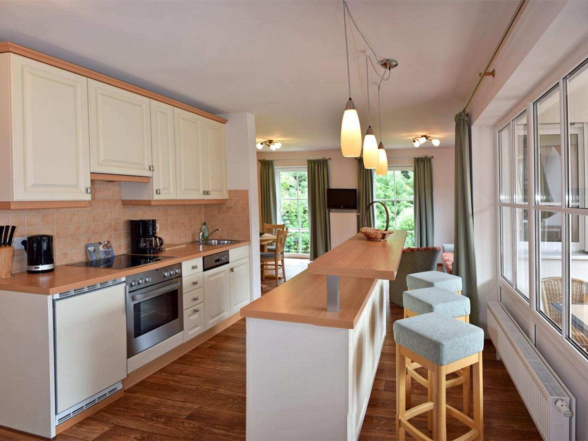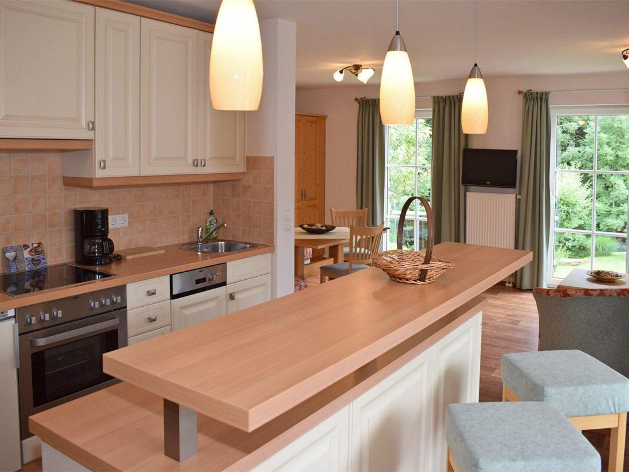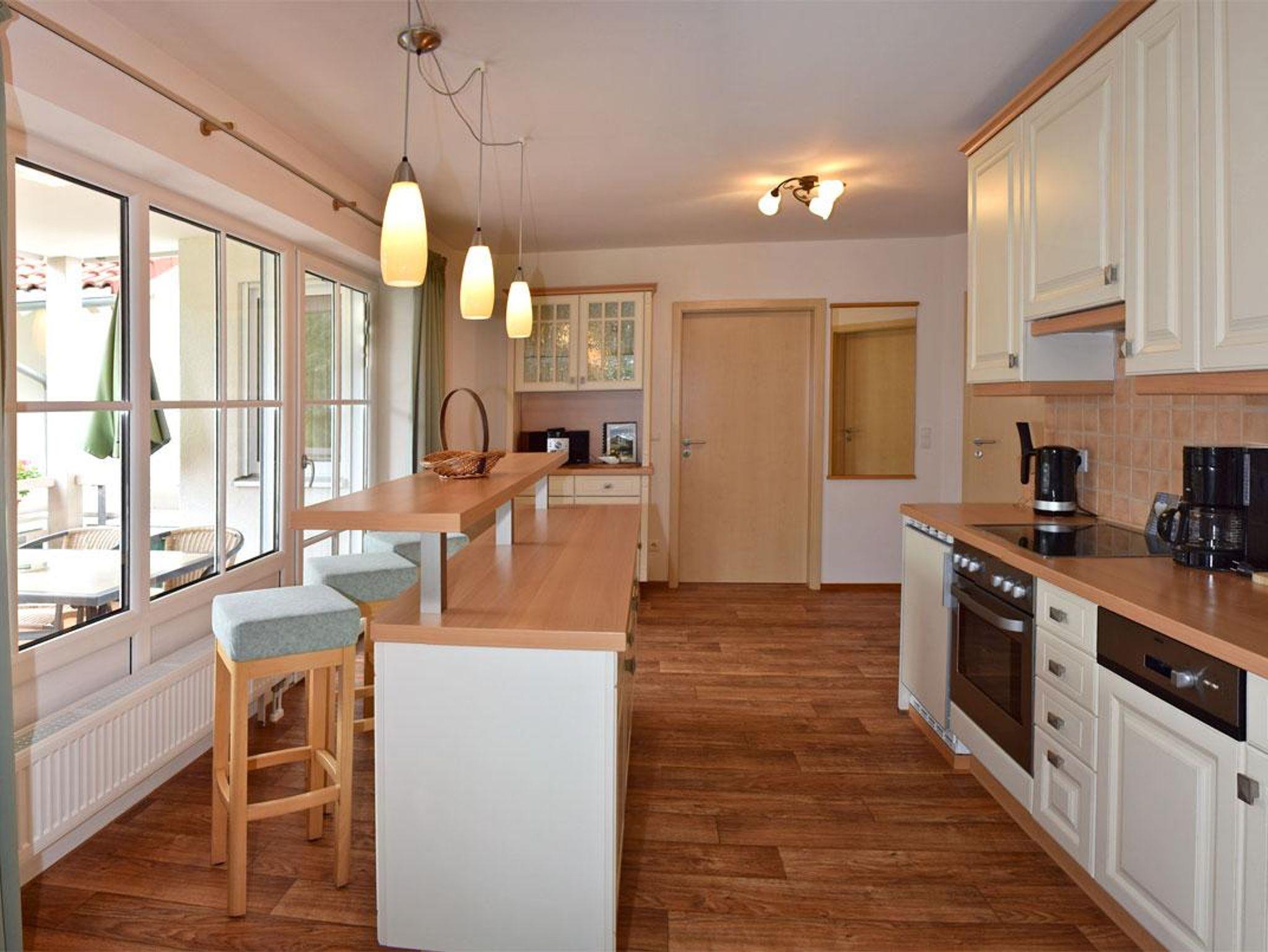 Diese Ferienwohnung liegt im Souterrain ist aber trotzdem sehr hell und freundlich. Sie verfügt über ein Schlafzimmer , die Standartbelegung beträgt 2 Personen. Eine Bettenaufstockung um 2 Personen ist möglich. Die Küche ist mit einer Spülmaschine und weiterem Zubehör komplett eingerichtet. Das Bad ist mit einer großzügigen Duschwanne ( auch für Rollstuhlfahrer) ausgestattet, außerdem befindet sich ein Fön im Bad. Der Wohnbereich ist mit einer ausziehbaren Couch , einer TV-SAT Anlage ausgestattet, außerdem läd eine gemütliche Essecke zum gemeinsamen Frühstück oder Abendessen ein. W-Lan steht Ihnen kostenlos zur Verfügung. Diese Wohnung verfügt über eine seperate Terrasse mit direktem Gartenzugang.