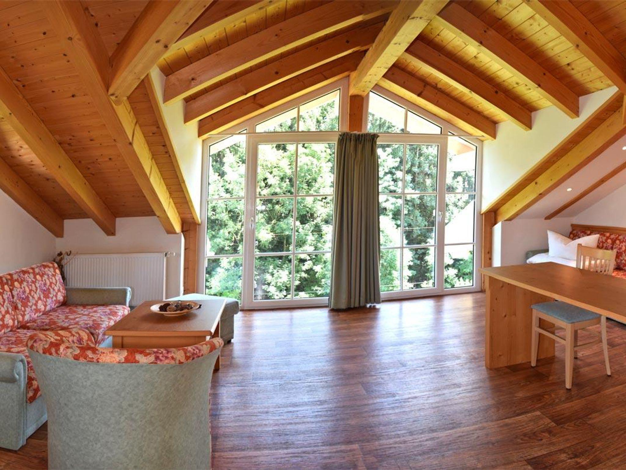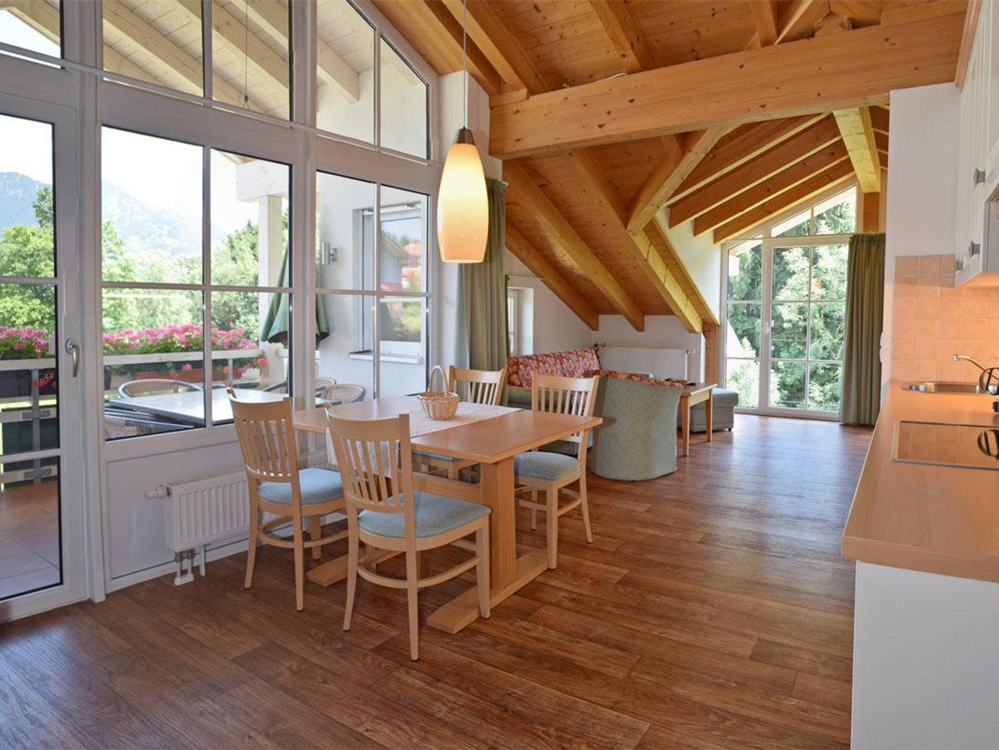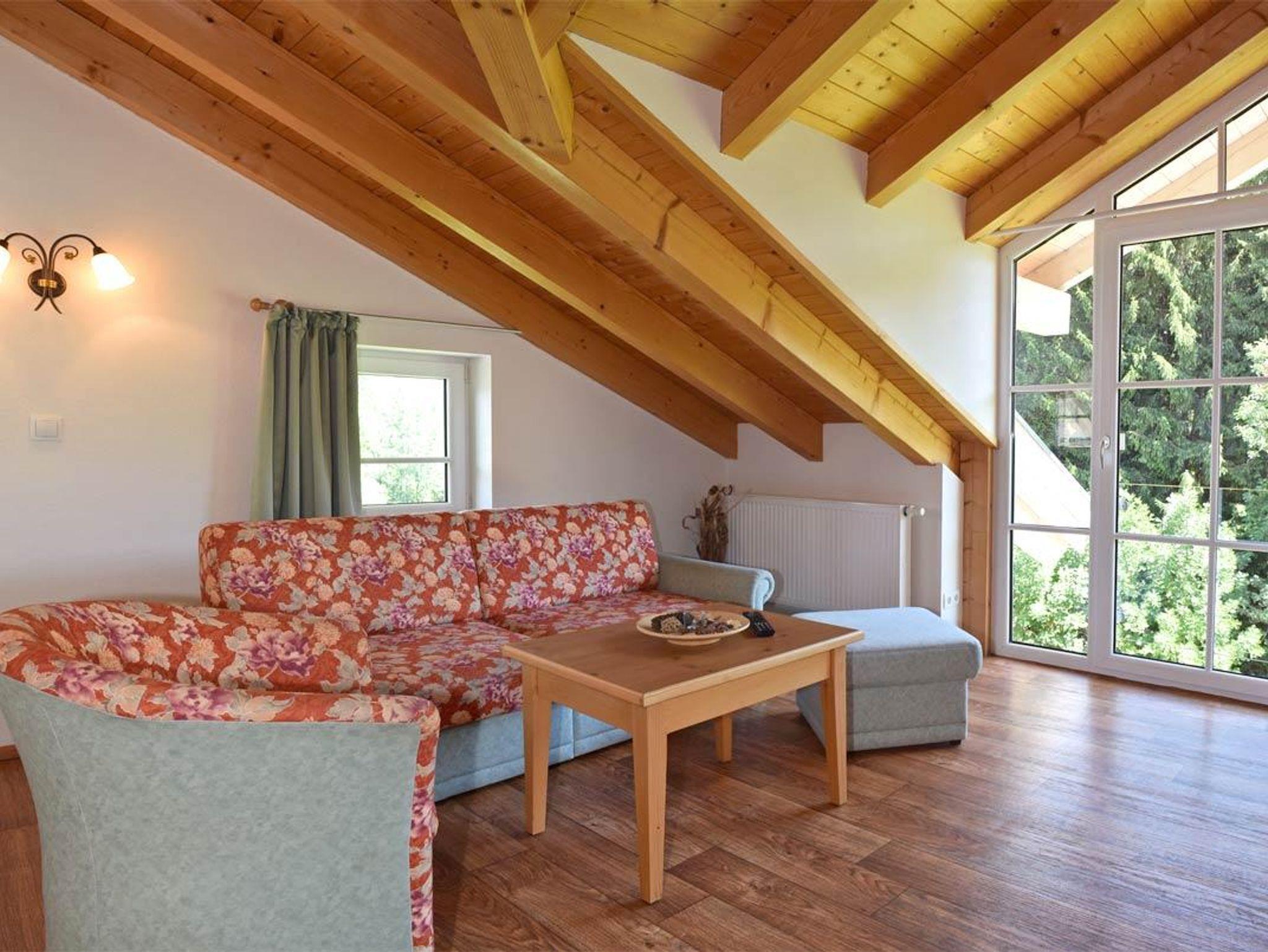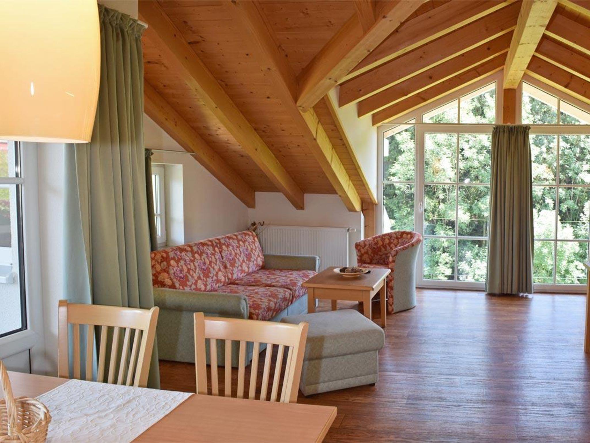 Unser neu erbautes Ferienhaus steht am Ortsrand von Ettensberg in ruhiger und schöner Lage. Genießen sie den Ausblick auf die nahe Bergwelt. Es stehen 7 Wohnungen zur Verfügung, die für 2- max.6 Personen Platz bieten. Alle Ferienwohnung sind in einem moderneren ländlichen Stil eingerichtet. Die Küchen sind mit einer Spülmaschine und weiterm Zubehör komplett ausgestattet. Jede der 7 Wohnungen verfügt über einen seperaten Balkon oder Terrasse. Internetanschluß ist ebenfallls in jeder Wohnung vohanden. 3 Ferienwohnungen sind behindertengerecht ausgestattet, und bieten einem Rollstuhlfahrer die Möglichkeit sich bequem bewegen zu können. Im Soutarain befindet sich ein Frühstücksraum in dem auf Wunsch ein Frühstück eingenommen werden kann. Daneben lädt ein Wellnesbereich mit Sauna, Dusche und Ruheraum mit Gartenzugang zur Erholung ein. Auch diese Räume sind barrierefrei und können leicht erreicht werden. Ein naturnaher Bach und Waldrand begrenzen die Gartenanlage mit Liegewiese, Grillstelle und Kinderspielplatz. Da ein Reitstall zu diesem Anwesen gehört, kommen reitbegeisterte Kinder und Erwachsene auf ihre Kosten. Wander - und Skigebiete, Seen, sowie das Familien-Vital-Park Bad sind schnell zu erreichen. Parkplätze und Mietgaragen direkt am Haus stehen zur Verfügung. Bushaltestelle und Bahnhof befinden sich in der Nähe.